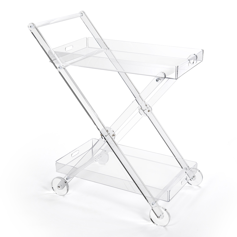 Köksmatvagn i transparent plexiglas eller med trä, fyrhjulsdesign tillverkad i Italien.