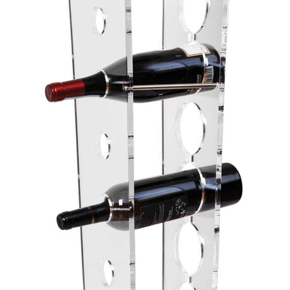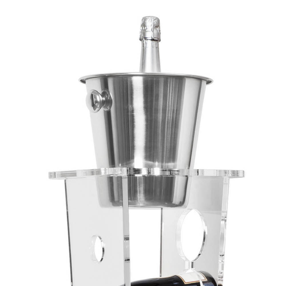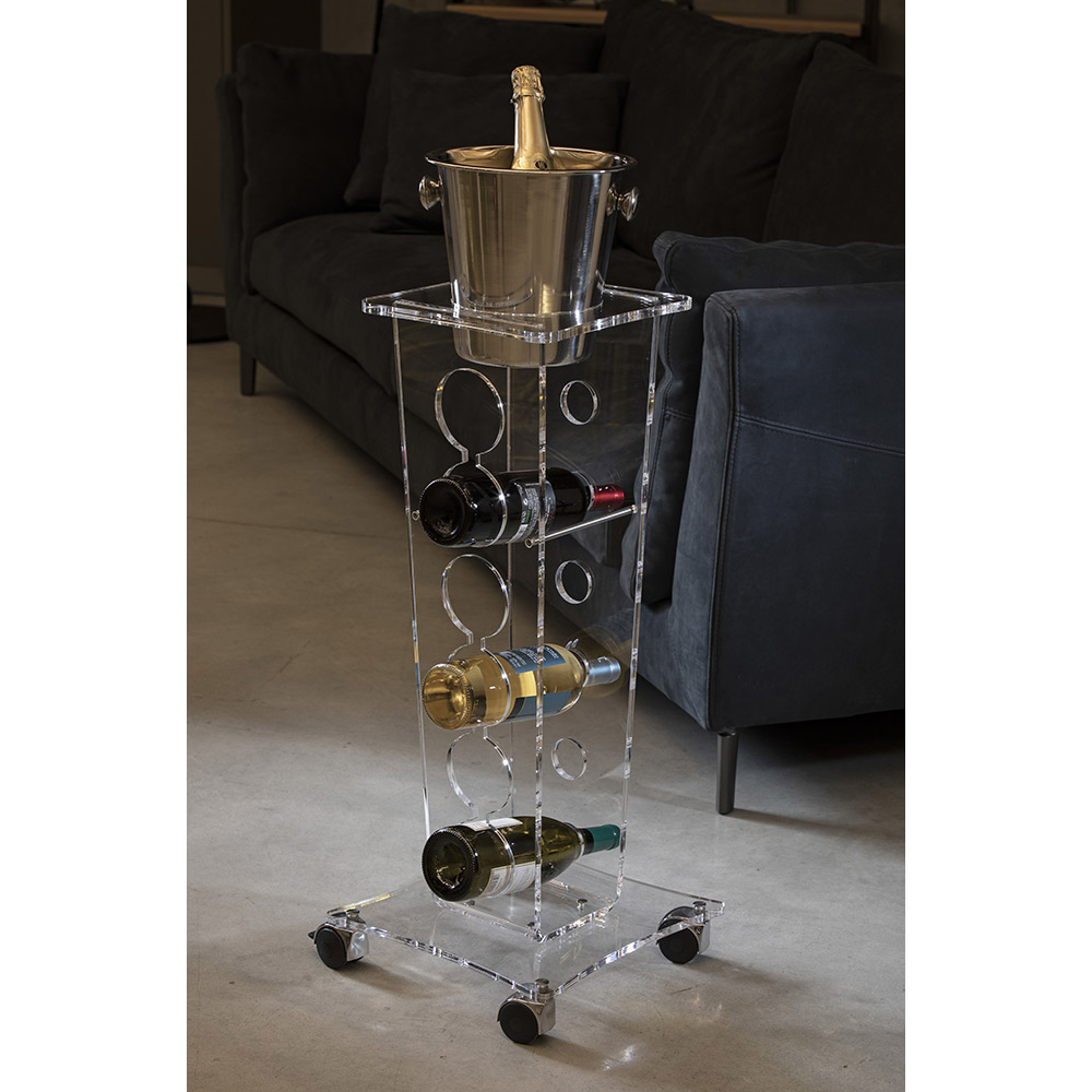 Den fristående vinflaskhållaren kännetecknas av en elegant design på hjul helt gjord av transparent akrylkristall.