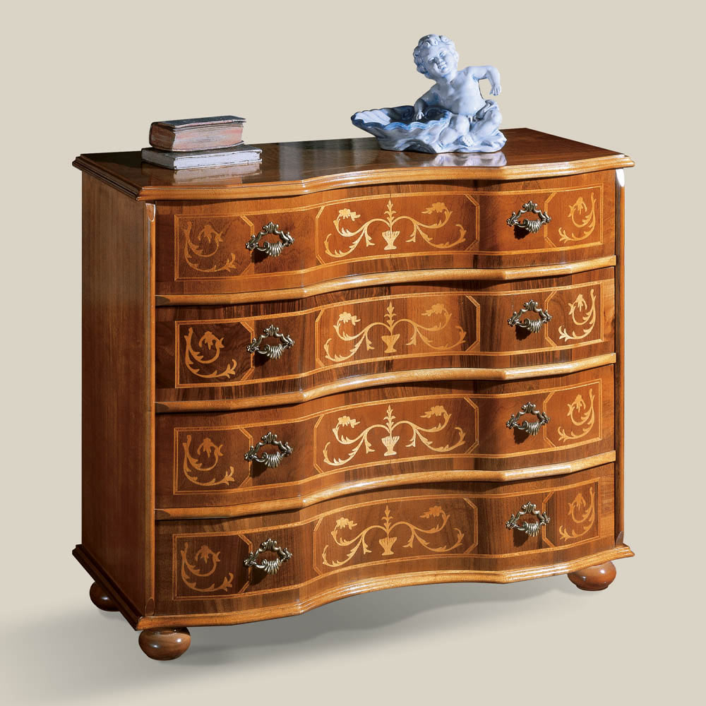 Klassisk stil byrå i trä med 4 eller 5 lådor Tillverkad i Italien.