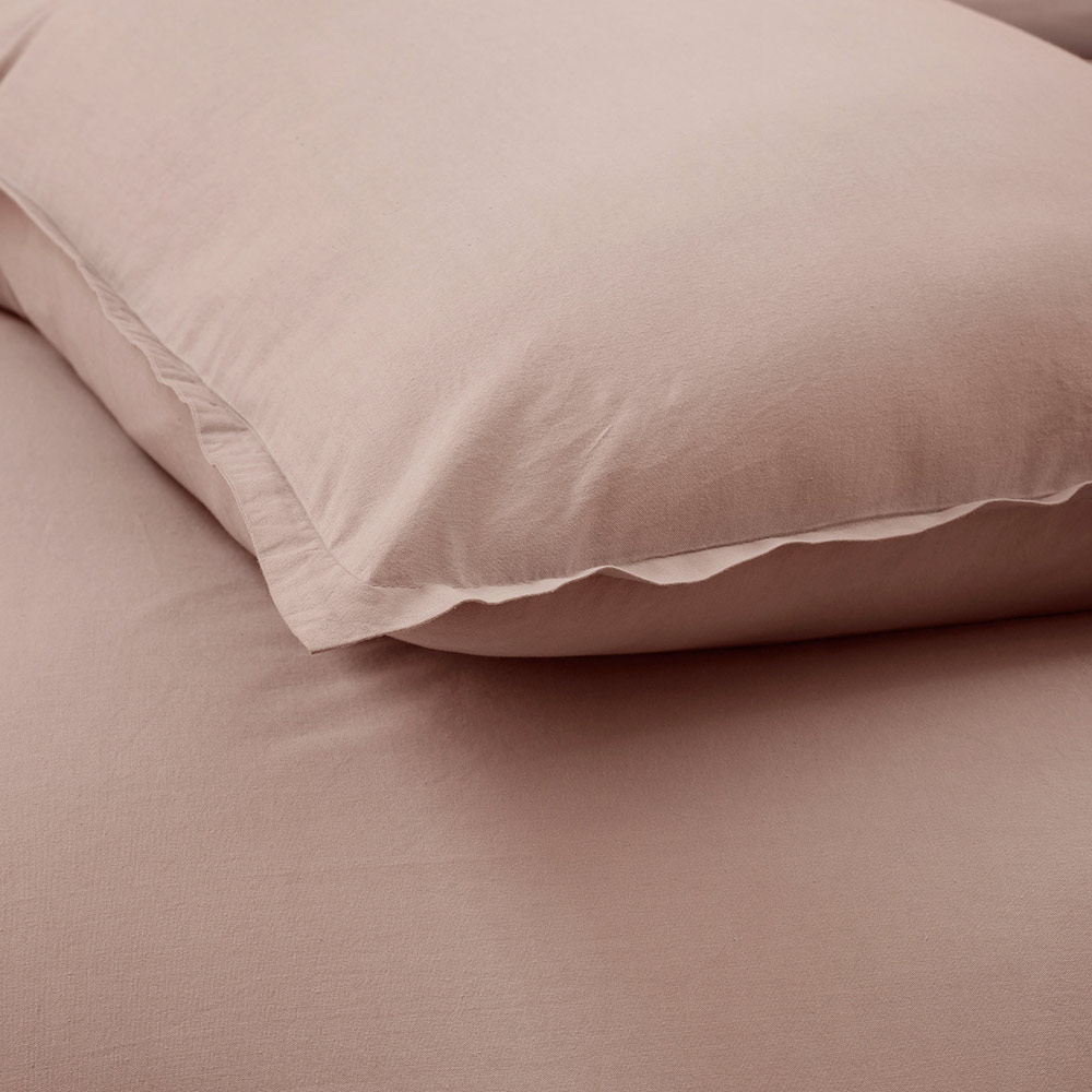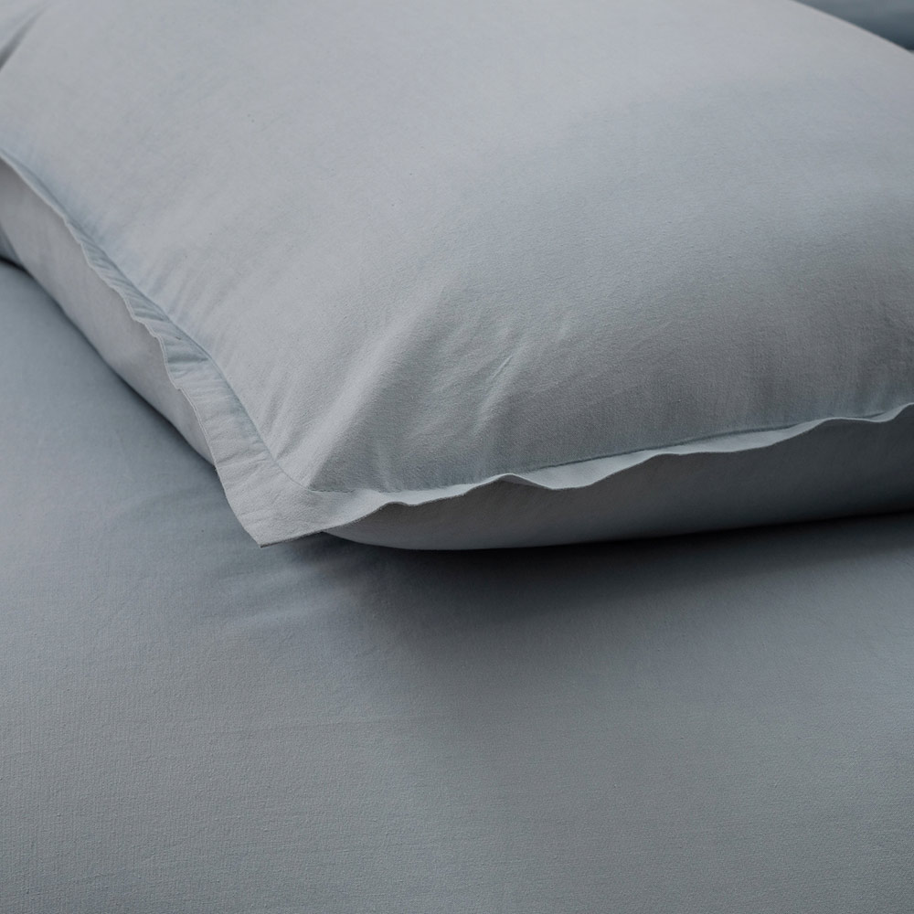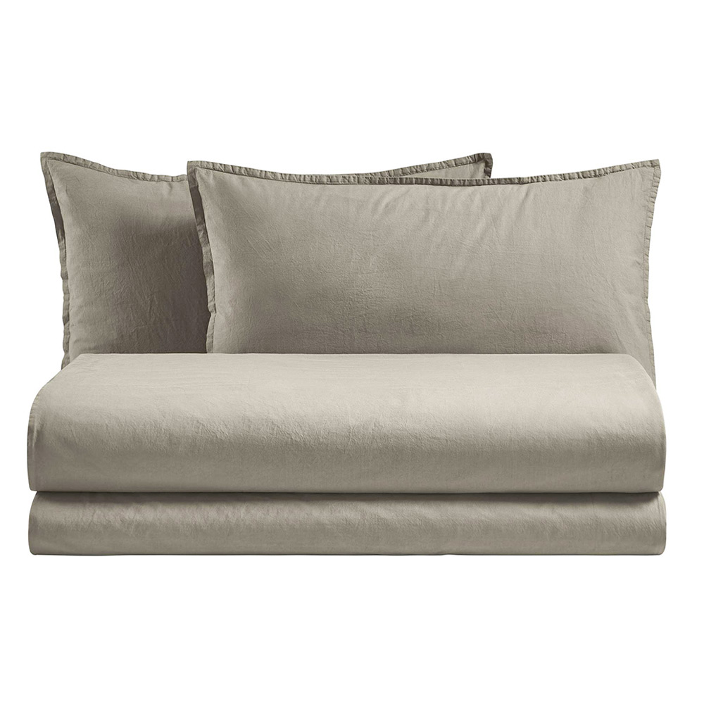 Dubbelt påslakanset i ren plaggfärgad bomull.