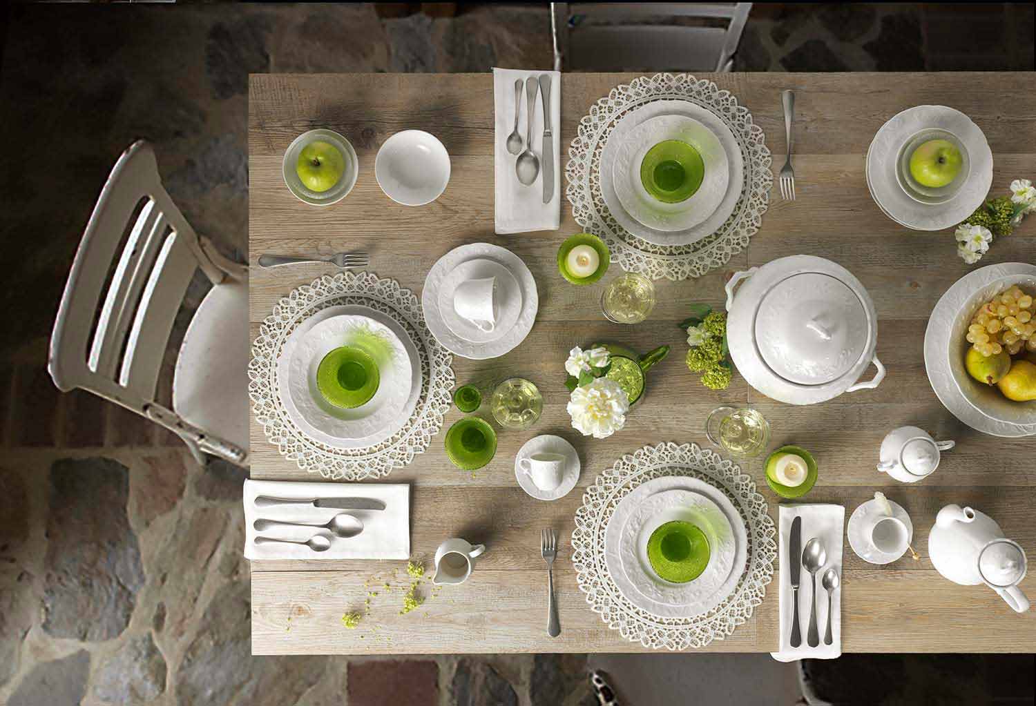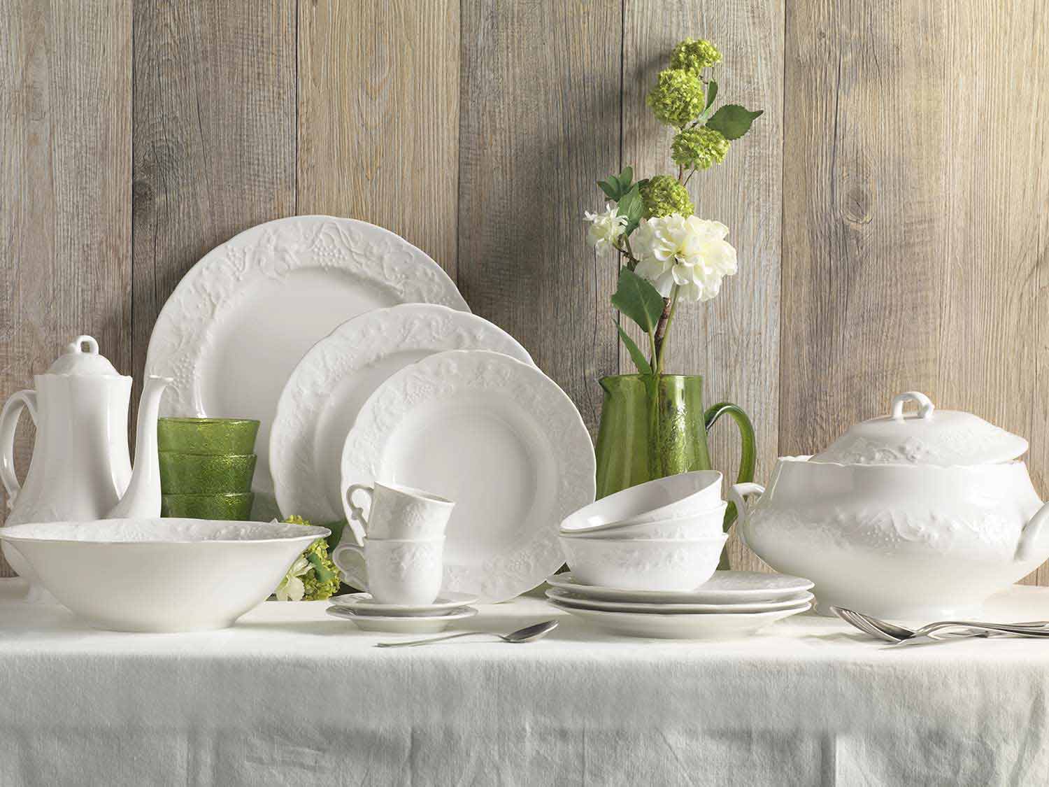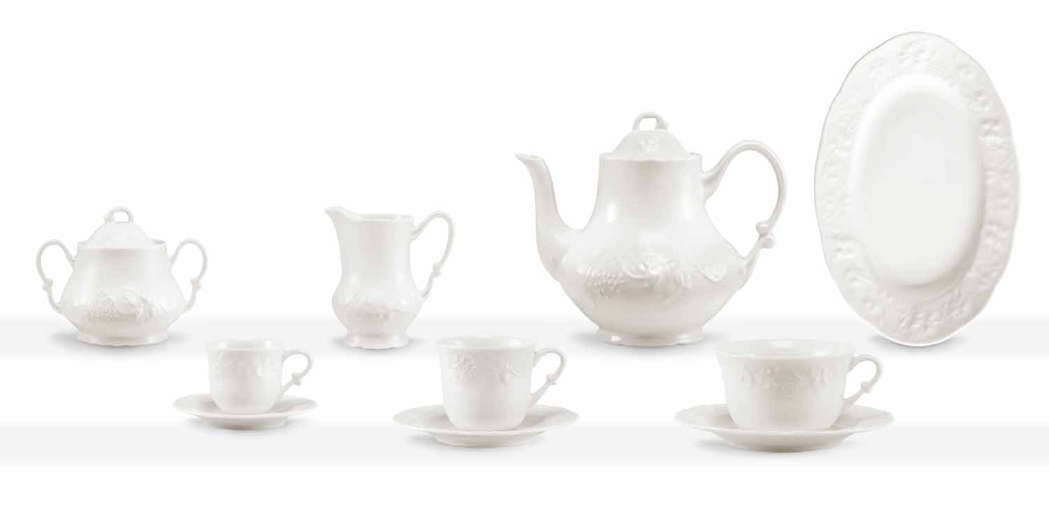 Upplev bordets kultur gjord av äkta känslor, reflekterad i en ren vit, välj mellan kreativa och spännande stilar, bland harmoniska former i fint porslin som denna tjänst erbjuder.