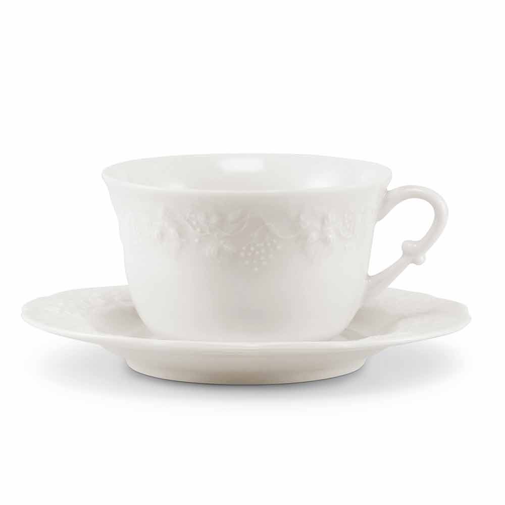 skulpturell elegans i lättnad är nycklarna för dessa skapelser i ljust vitt porslin och en konstnärlig lättnadsdekoration. Å ena sidan en attraktiv design med flera former, å andra sidan den charmiga landinspirerade dekorationen.