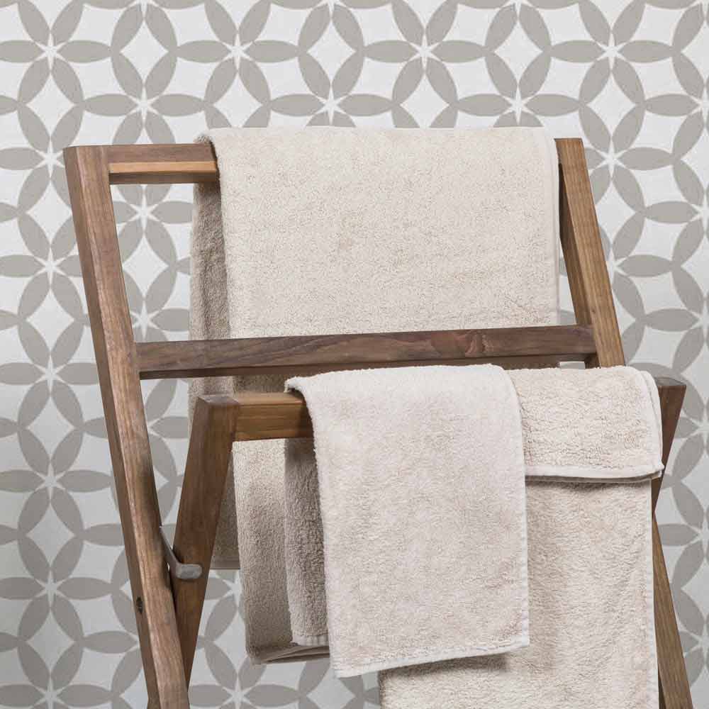 Handdukshållare i trä Fristående stängbar handdukshållare i naturligt teak.