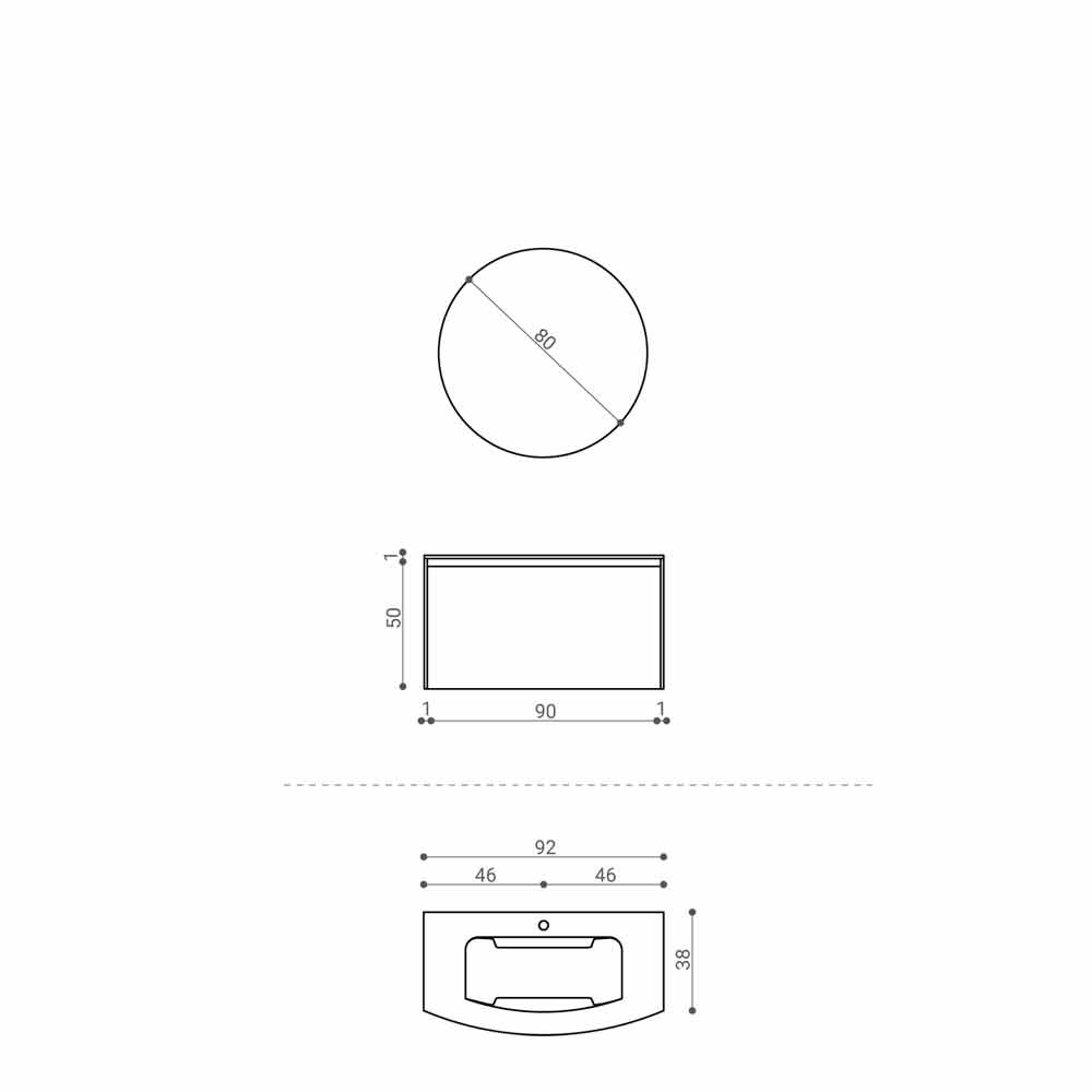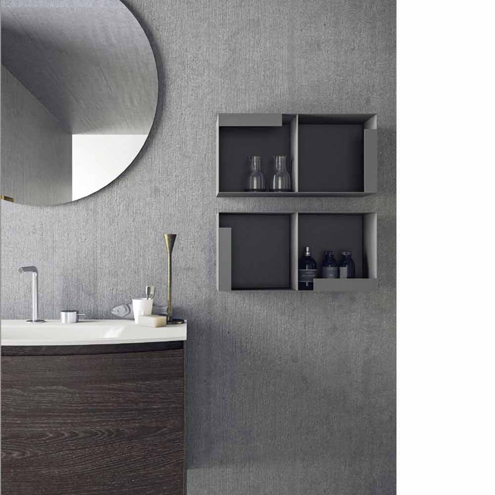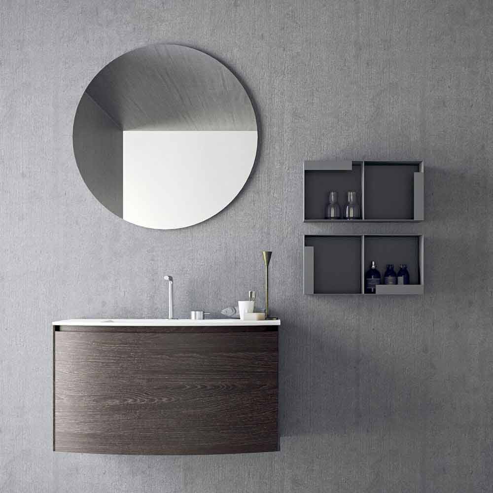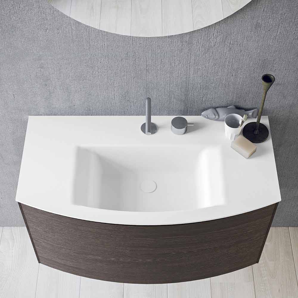 Modern badrumskomposition, upphängd och minimal design med integrerat handfat, tillverkad i Italien.
