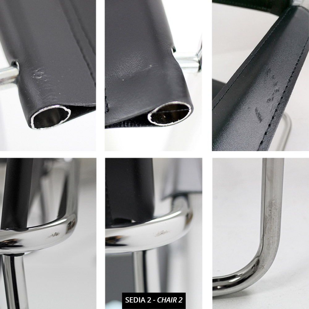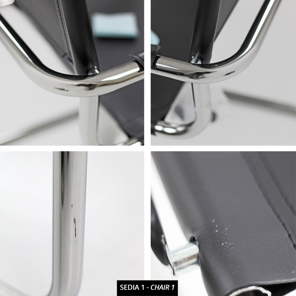 Modern stol för mötesrum eller konferensrum i förkromad metall och svart läder.