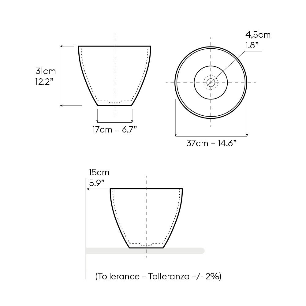 Detta tvättställ är tillverkat av handdrejad eldfast lera och utmärker sig med sin enkla, smala form , utformad för att förhöja diskbänkskivans elegans och visuell lätthet. Ett designobjekt som kombinerar formell enkelhet med en stark materialnärvaro.