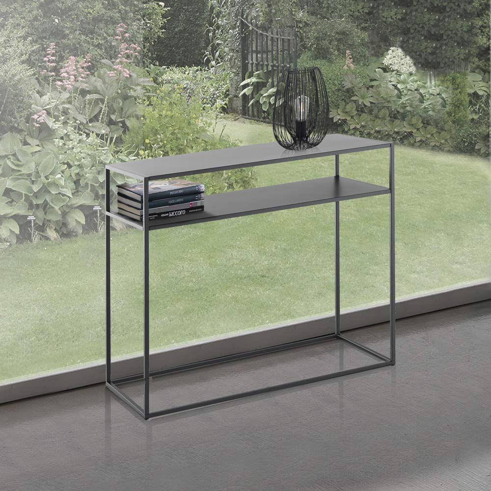 matt antracitlackerat stål och 1,5 cm hög topp och hylla av 1 mm tjockt matt