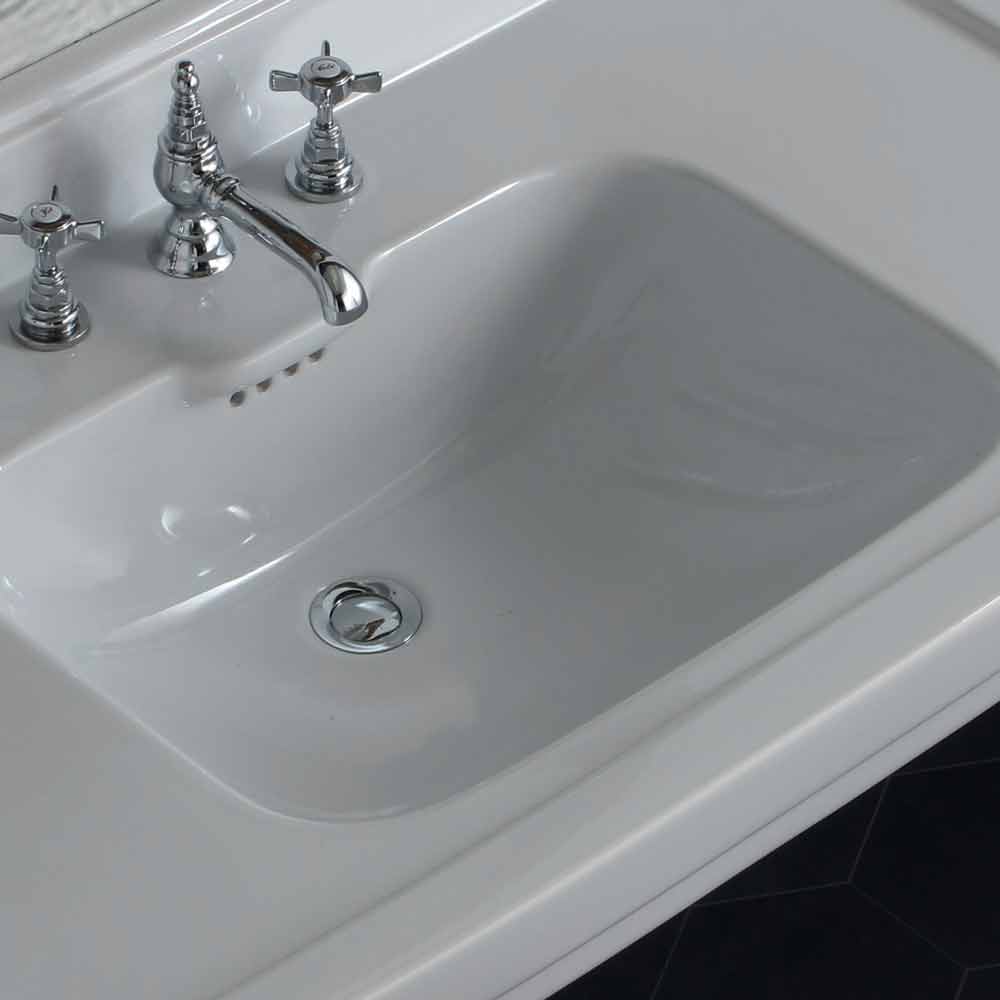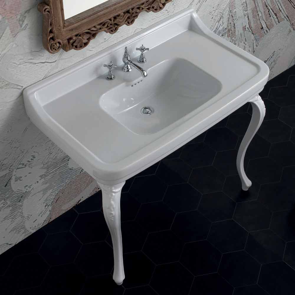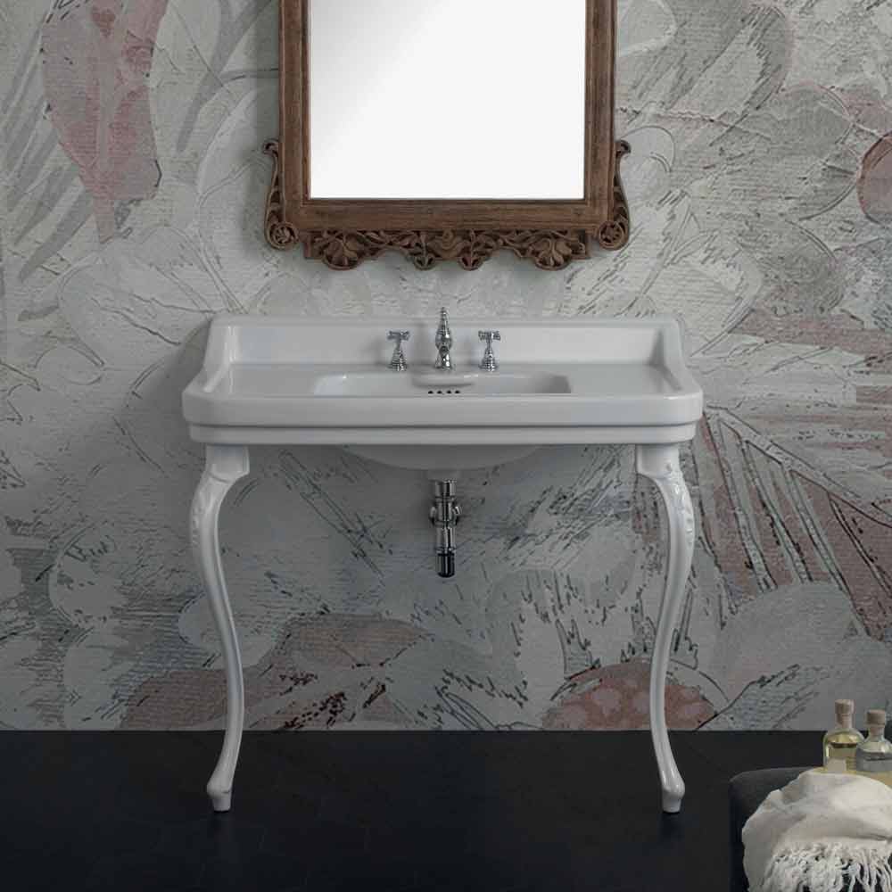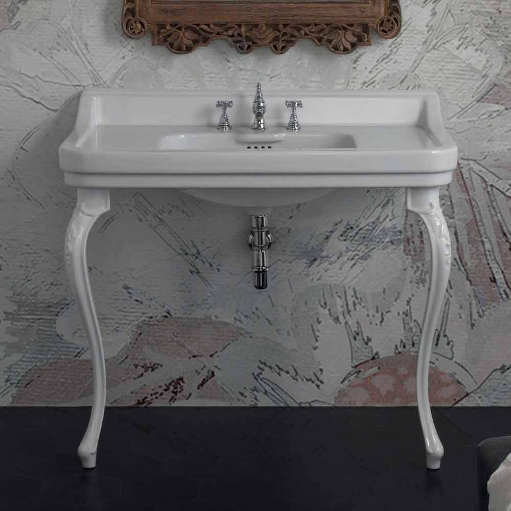 Konsoltvätt av klassisk design i keramik tillverkad i Italien, Swami Bänkskivans handfat med ett handfat helt i vit keramik. Tack vare sin fantastiska klassiska design och dess funktionalitet kommer det att ge ditt badrum skönhet och praktik.