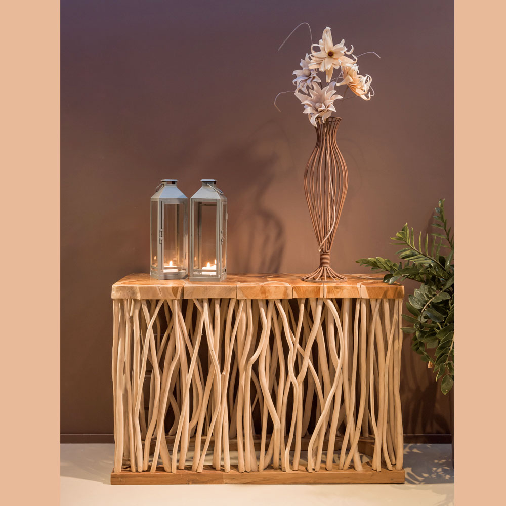 Hantverket och användningen av trä i sin mest autentiska form gör varje konsolbord till ett unikt stycke, där ådringen och de naturliga ojämnheterna blir element av stort estetiskt värde.