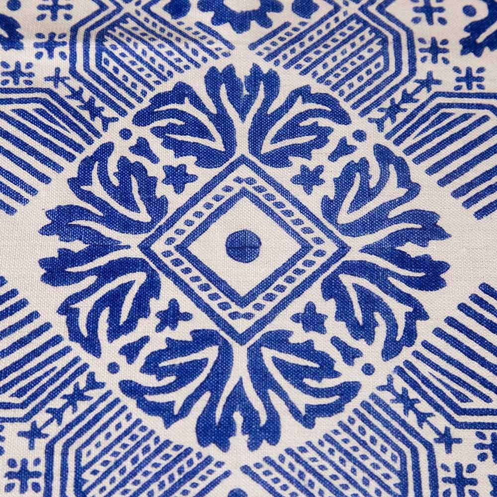 Hög italiensk hantverksduk i rent linne, helt handtryckt i blått eller rost med träformar med en konstnärlig design av den geometriska stjärnblomman, ett exklusivt och kvalitativt unikt stycke tillverkat i Italien.
