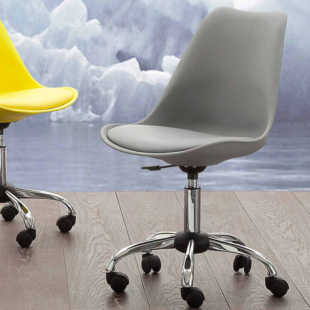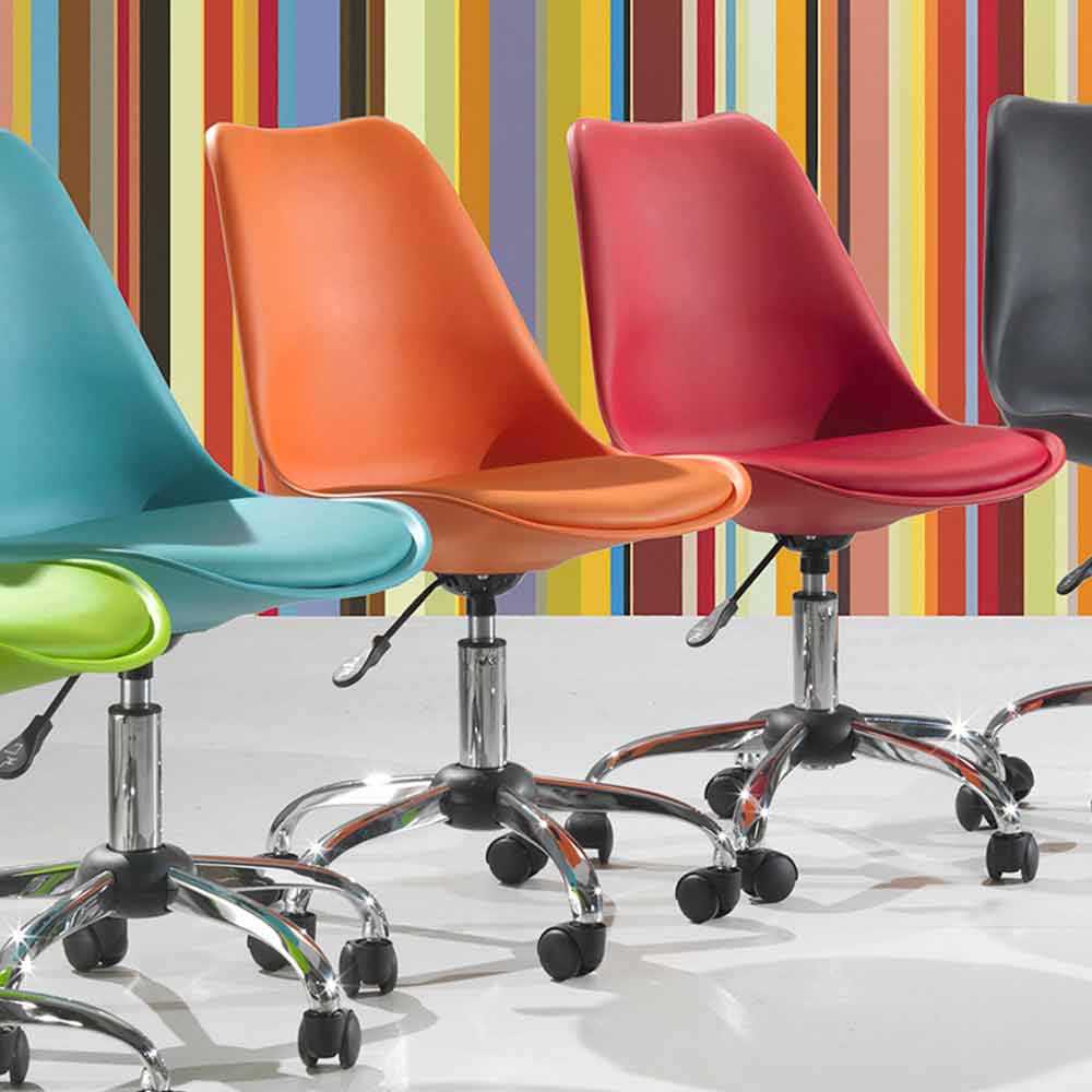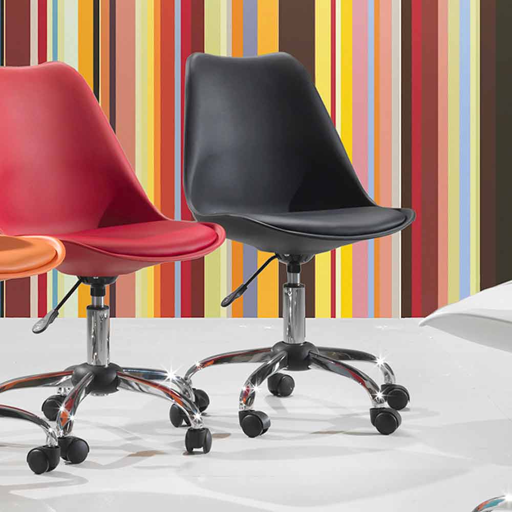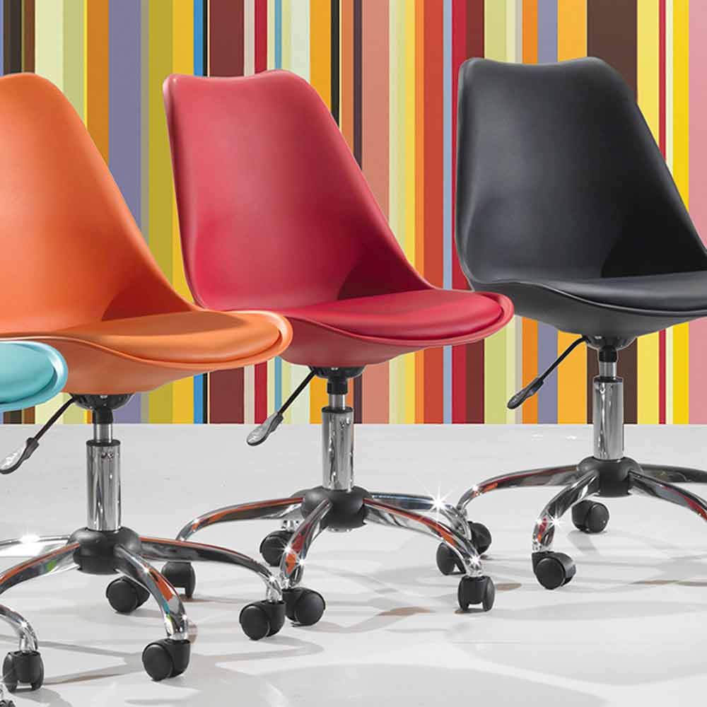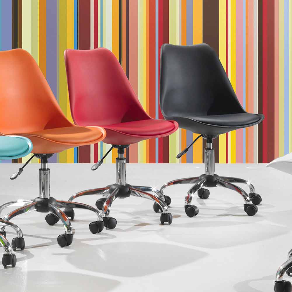 Loredana kontorsstol är idealisk för att säkerställa maximal komfort under arbetstiden tack vare sittplatsen med gaslyft. Tillverkad med polypropylenstol och bekväm med en eko-läderdyna som matchar sätet och kromad metallbas med hjul.