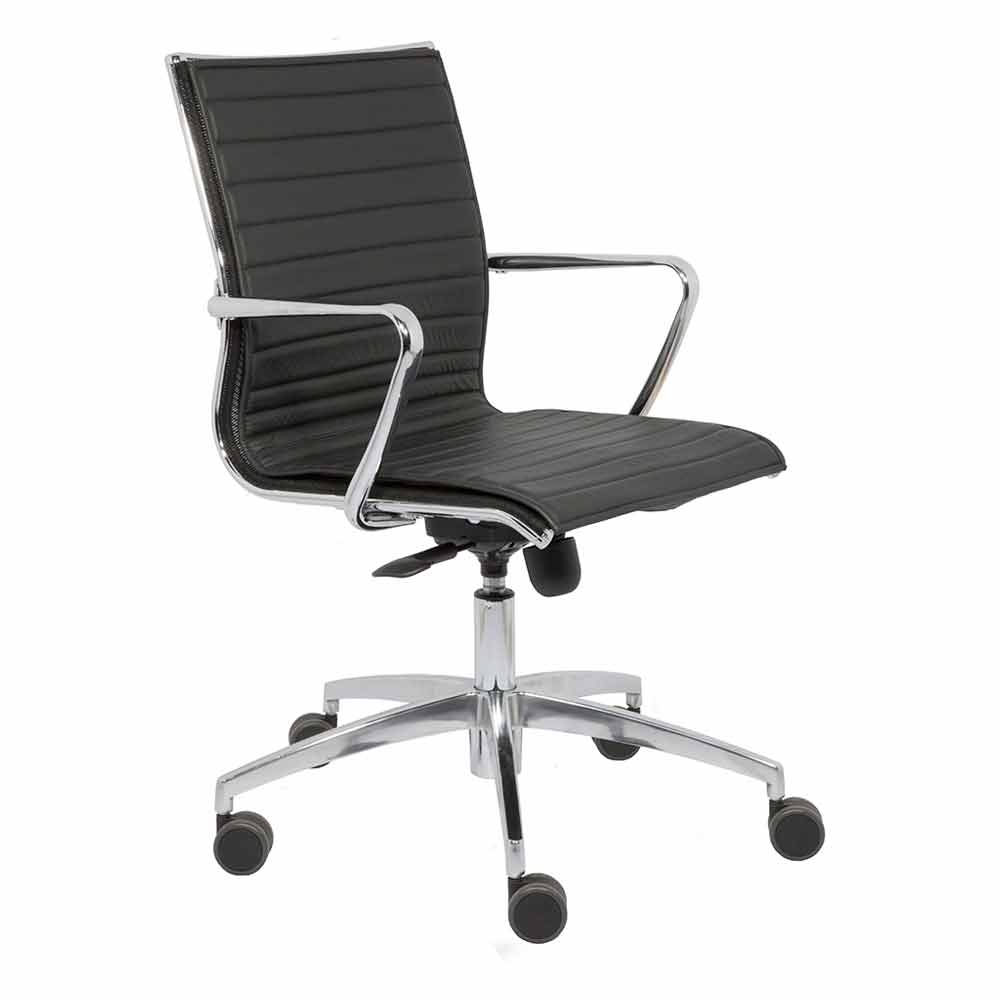 Vridbar kontorsstol med hjul och ergonomisk designkudde i tre utföranden, tillverkad i Italien.