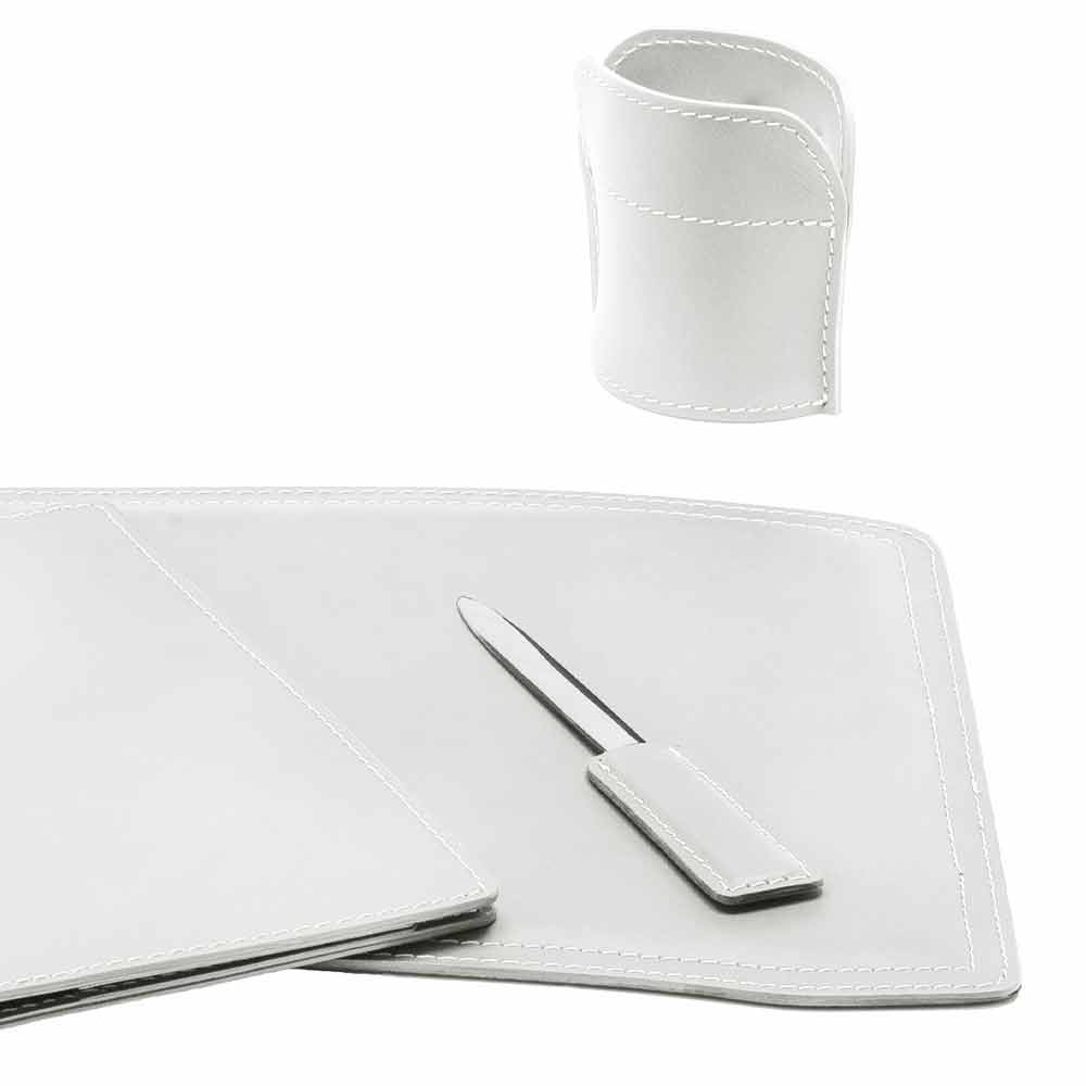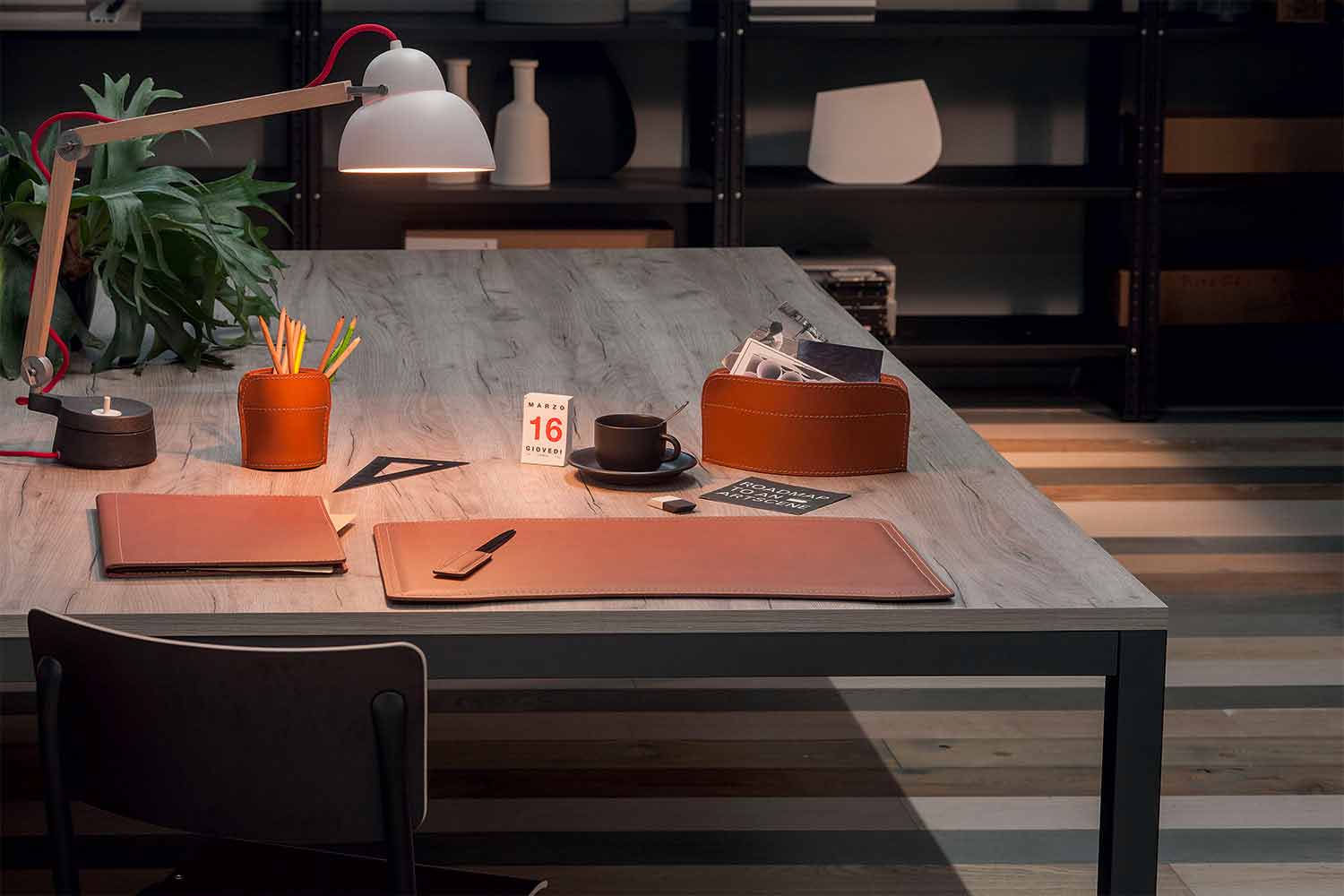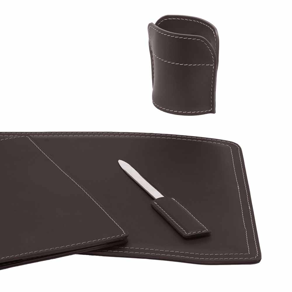 Skrivbordstillbehör i limat läder, set bestående av 5 delar, tillverkat i Italien Brando