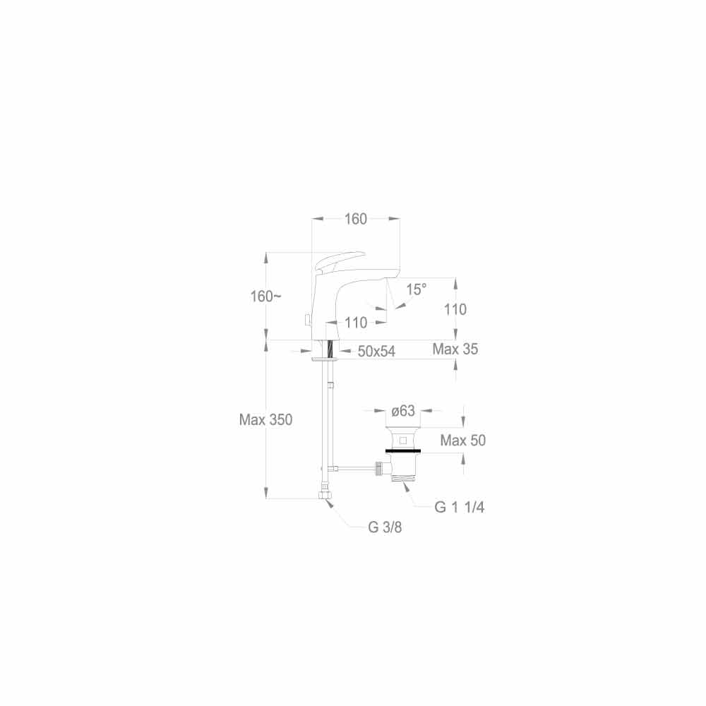 Tvättställsblandare i förkromad mässing Tillverkad i Italien.