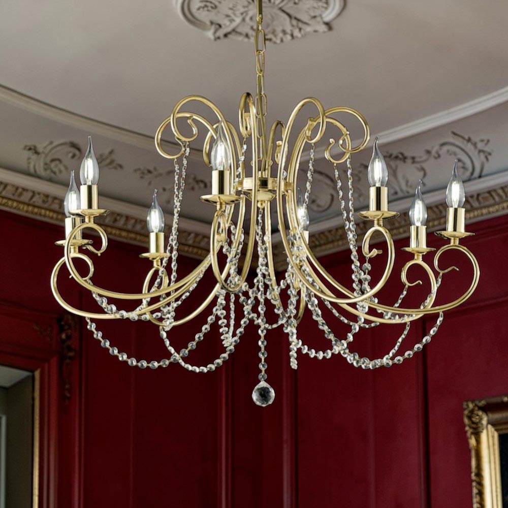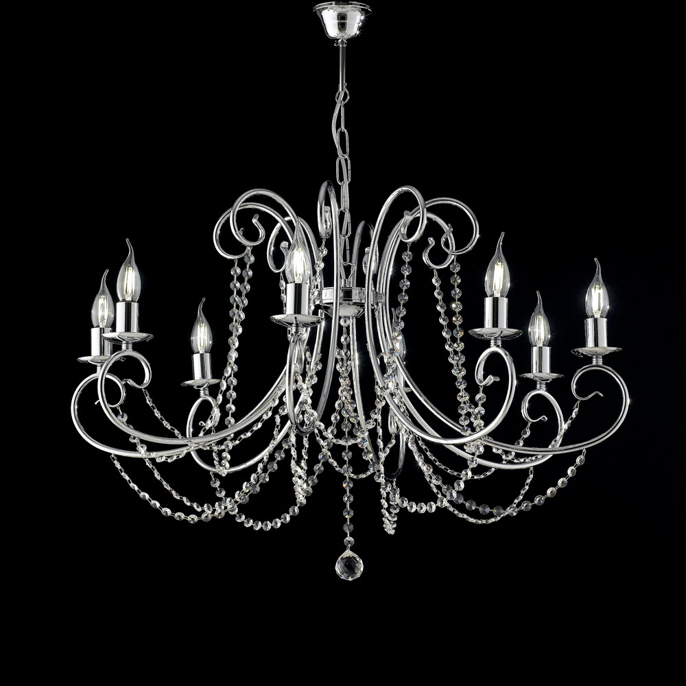 Denna klassiska järnkrona är en ikon för tidlös elegans och fängslar vid första anblicken med sina slingrande linjer , fint utformade armar och kaskader av dekorativa kristaller som reflekterar ljuset med raffinerad briljans.
