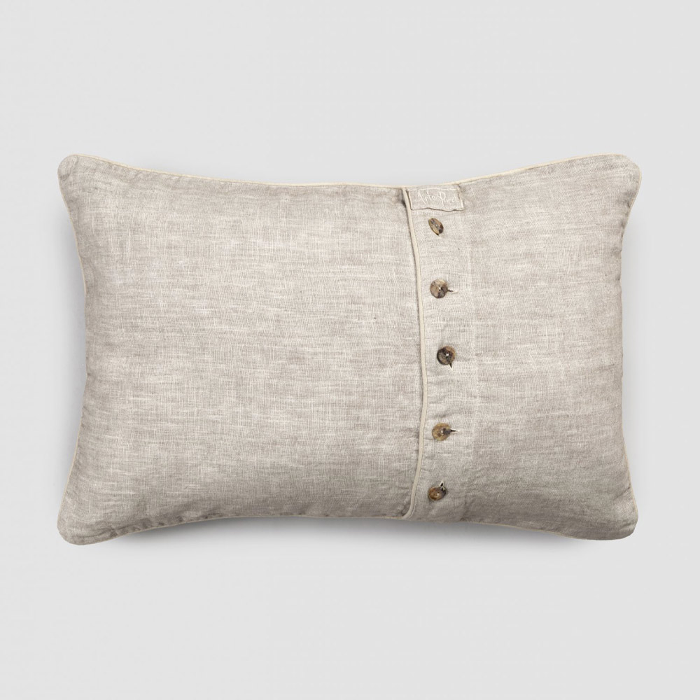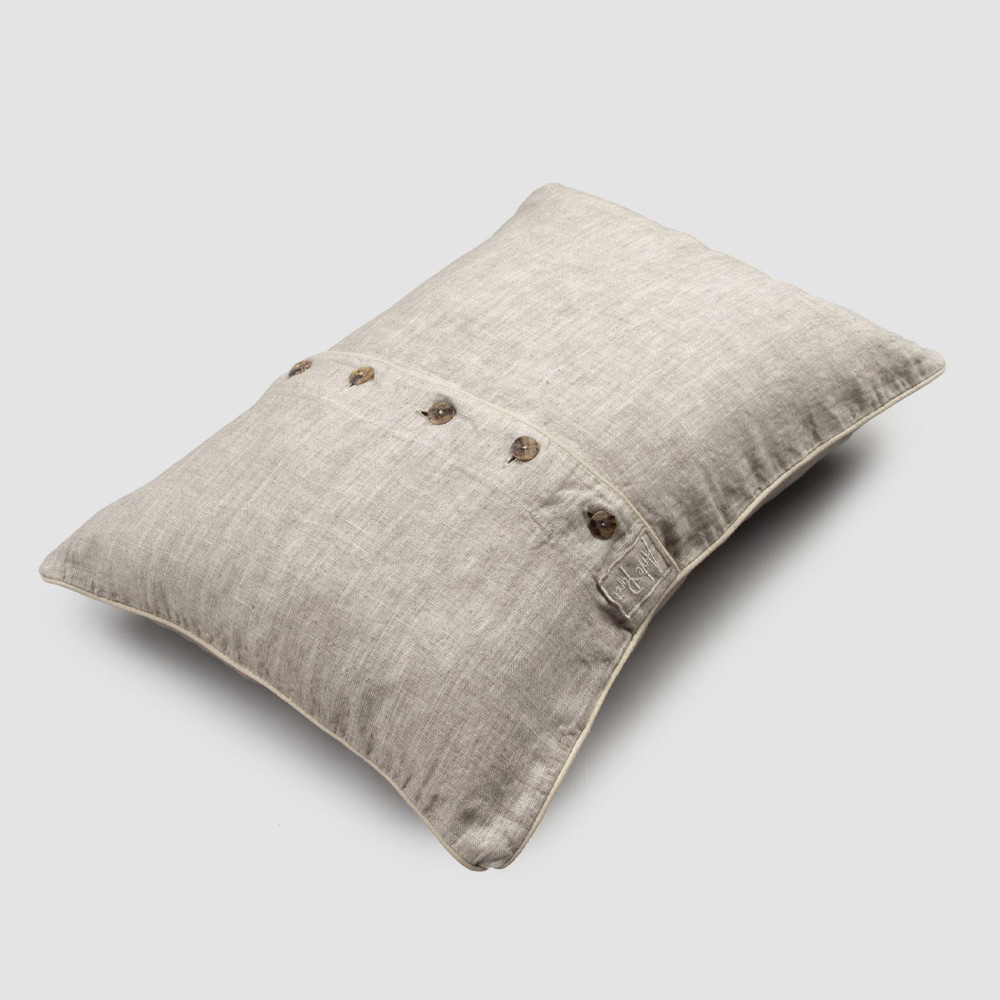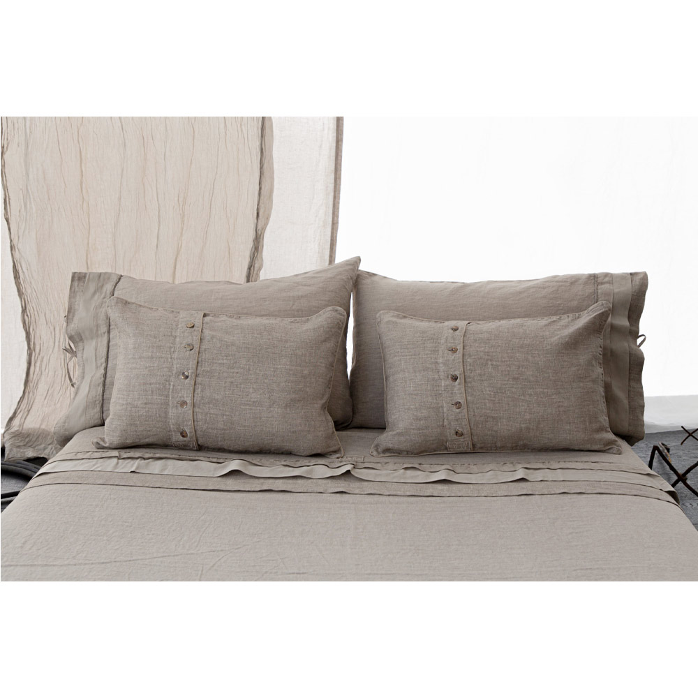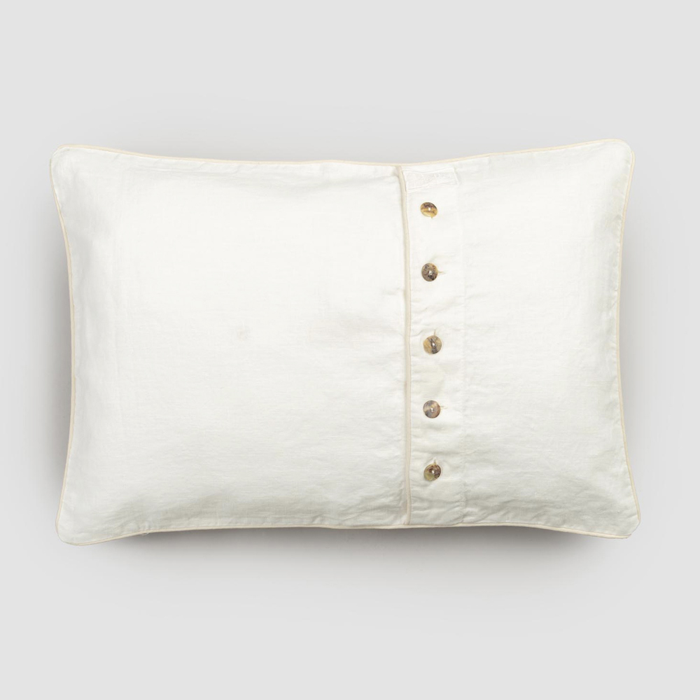 Rektangulärt örngott med linne med spetsar, knappar och elegant kant tillverkat i Italien.