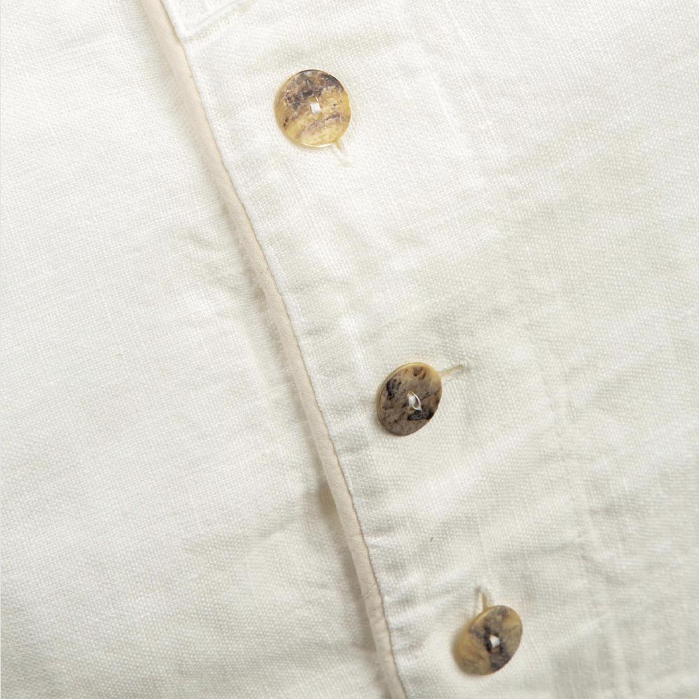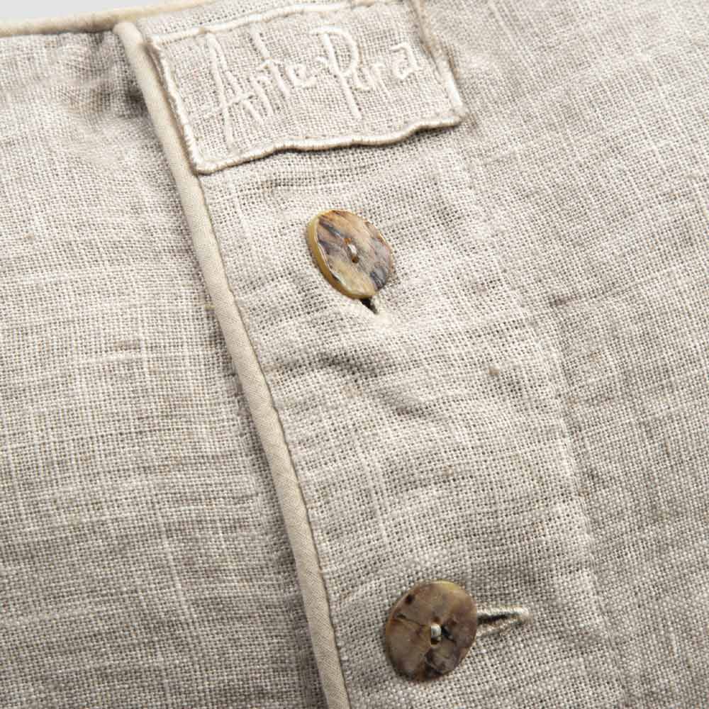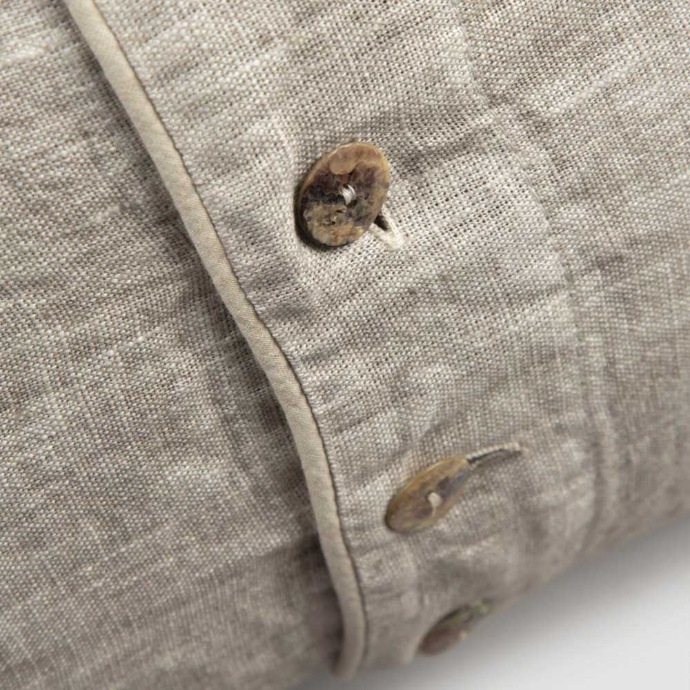 linnedörngott dekorerad med en central rad med pärlemorsknappar
