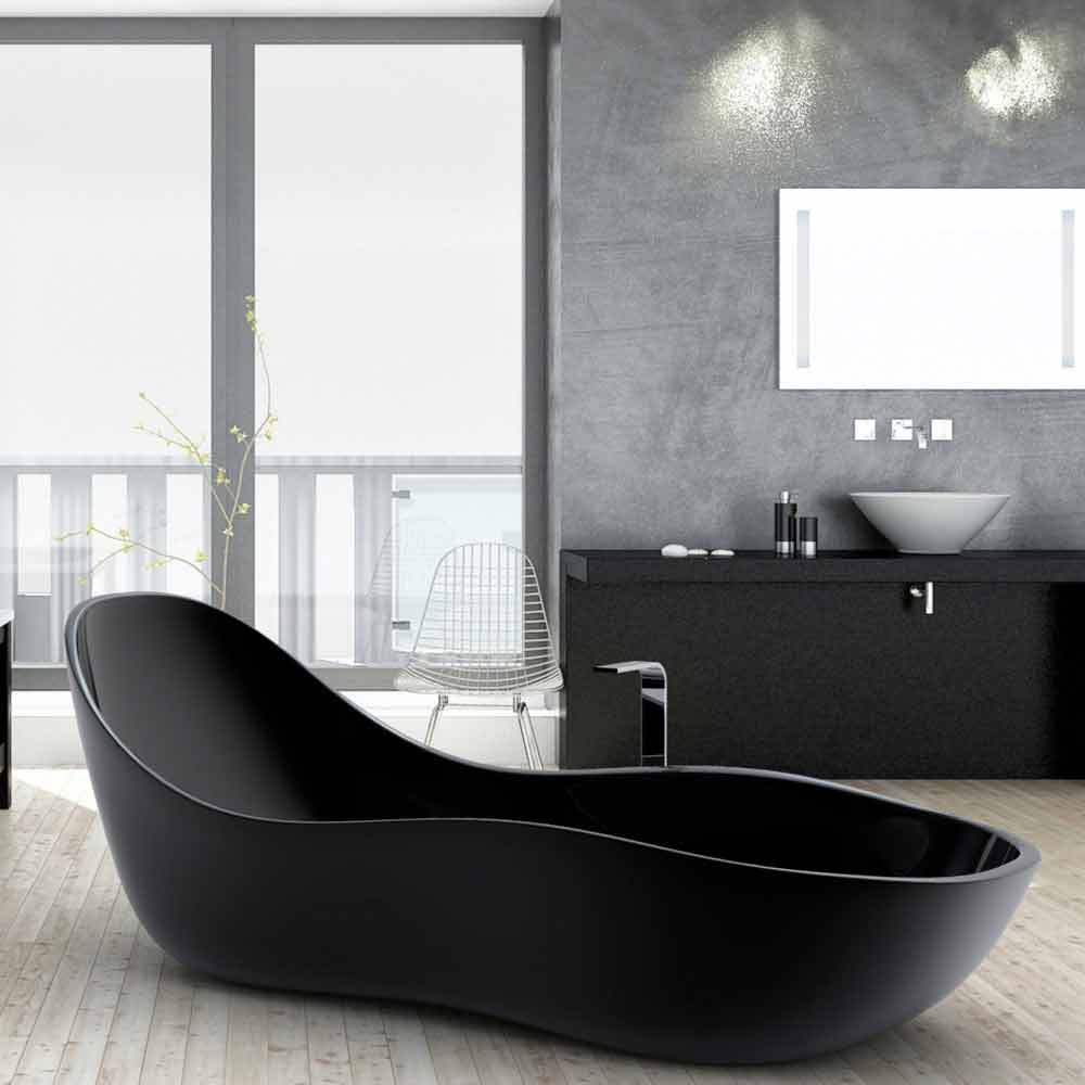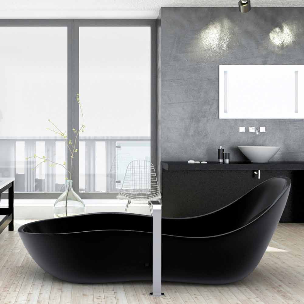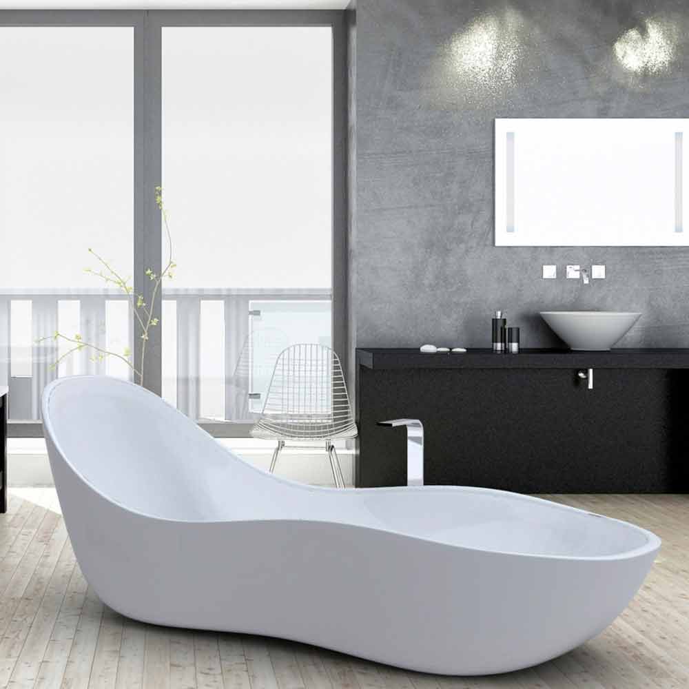Fristående Solid Surface badkar; med bekväma och vågiga former, framhävd av en sidoprofil som påminner om formen av en våg, från vilken den har fått sitt namn. Förutom sin "smidiga" profil har den ett lyft i bakändan, som blir ett riktigt stöd för ryggen. Den är mycket ergonomisk eftersom den är rundad i alla delar och i den inte höga delen verkar dess böjningar följa med upp- och nedstigningsrörelserna från den. Handfat finns i två färgvarianter: Vit (RAL9003) eller Svart (RAL9005)