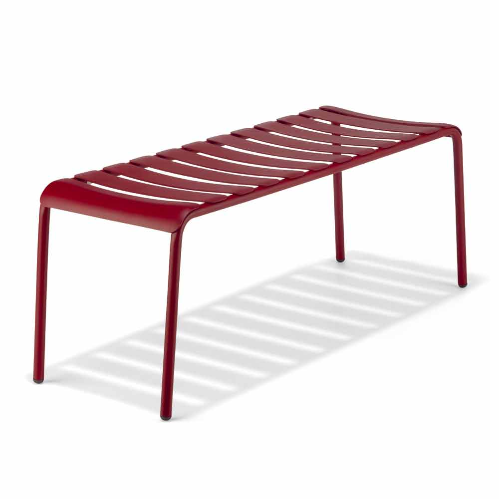 Låg utomhusbänk som kännetecknas av en elegant men diskret närvaro tack vare sin lilla storlek. Bänken är tillverkad helt av målad aluminium vilket gör den perfekt för utomhusbruk och som också ger användarfrihet för olika ändamål vilket visar hög mångsidighet. Finns i 8 färgvarianter.