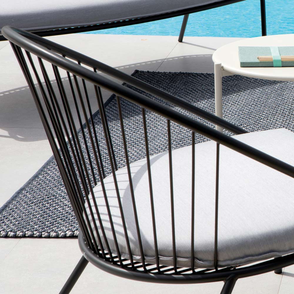 motståndskraft mot korrosion från atmosfäriska ämnen som regnsyra eller salthalt, vilket gör fåtöljen till ett perfekt element för att möblera alla öppna utrymmen.
