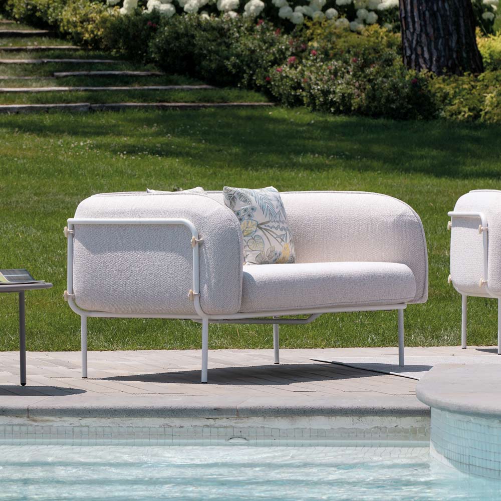 Låg trädgårdsfåtölj med pulverlackerad galvaniserad järnstruktur och tygsits Tillverkad i Italien