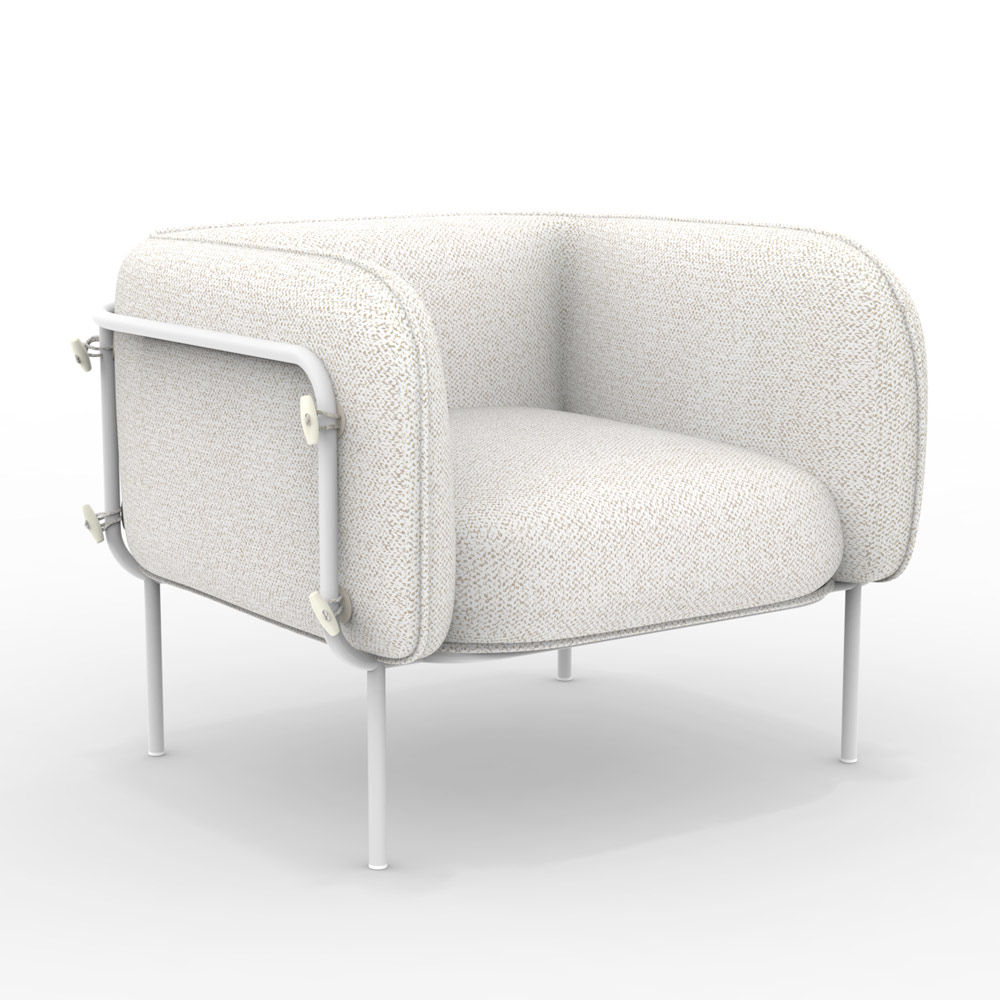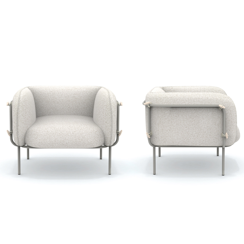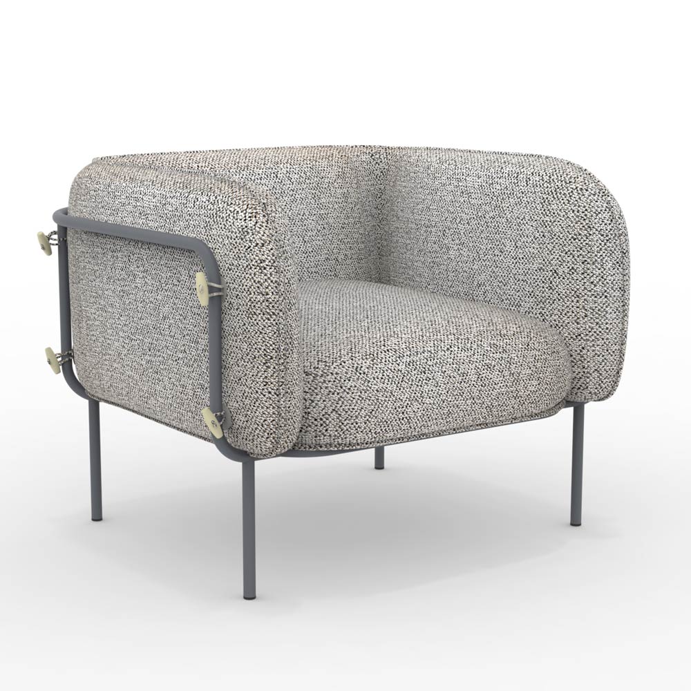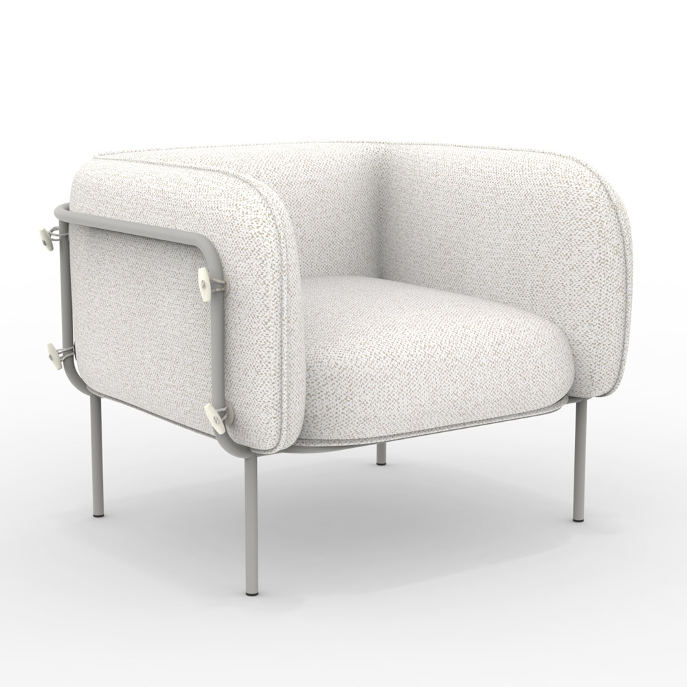 vattentäta och UV-resistenta tyget omsluter mjuk stoppning som inbjuder till stunder av sann avkoppling. De tillgängliga tygbehandlingarna smälter harmoniskt in i omgivningen, reflekterar solljuset och bidrar till att skapa en atmosfär av lugn och stil. Placerad bredvid en glittrande pool eller i ett grönt hörn av trädgården, är denna stol ett löfte om långvarig komfort och skönhet som trotsar tiden.