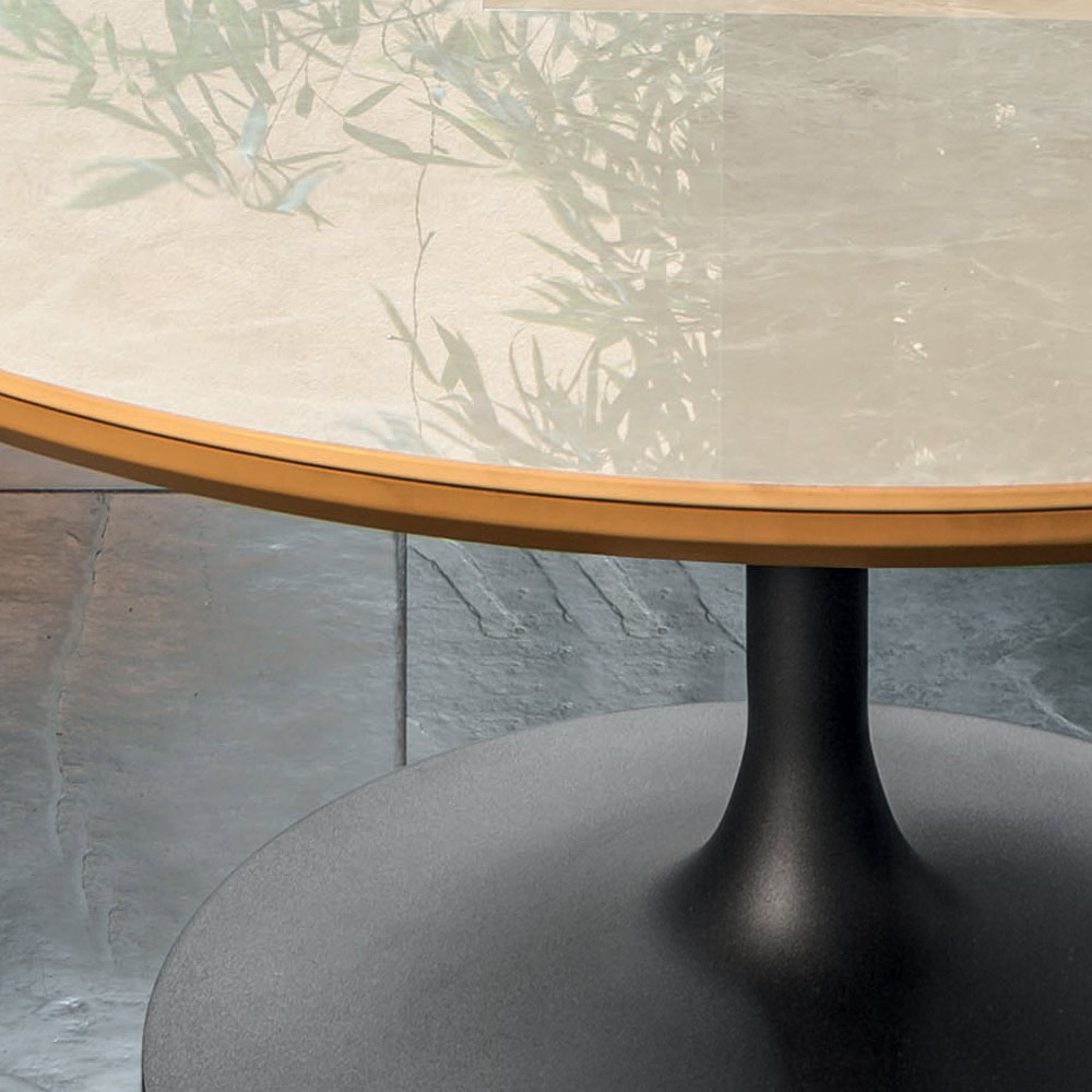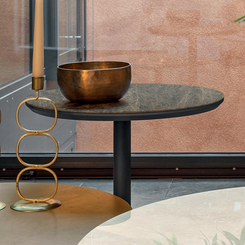 Runt soffbord i metall och keramikskiva i olika storlekar och utföranden tillverkat i Italien.
