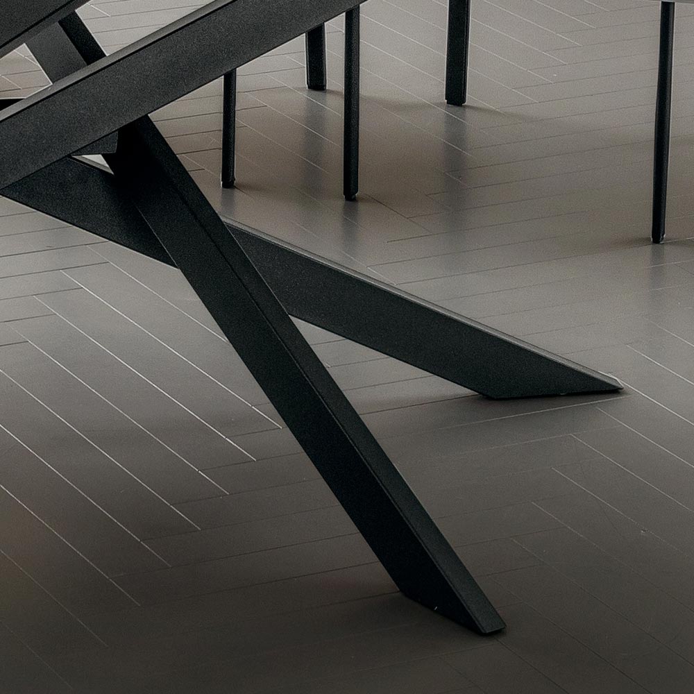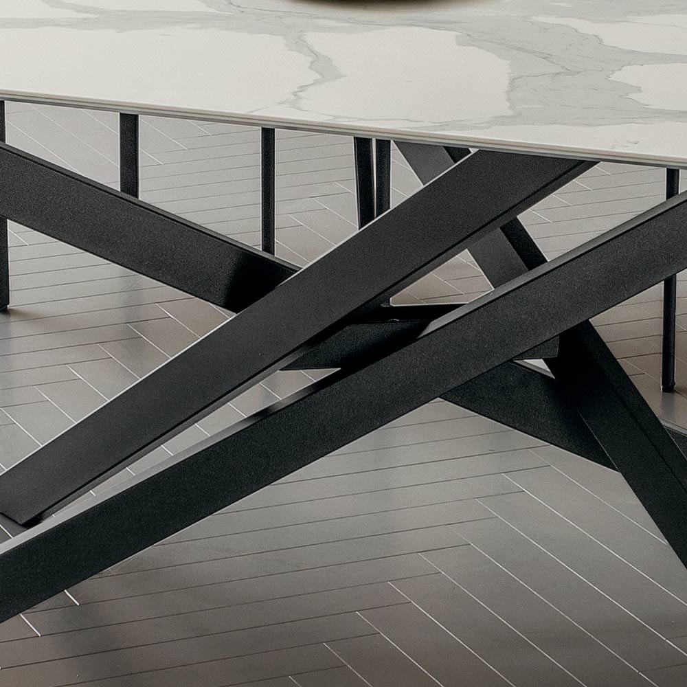 förfinad och originell estetik som präglar varje miljö med eleganta och förfinade element som är moderna och kreativa på samma gång. Det speciella med det här bordet är basen med korsade ben som berikar dess design genom att revolutionera stilen i hela rummet där det blir huvudpersonen och erövrar all uppmärksamhet. Den underbara fatskivan fullbordar bordets slutliga utseende och ger en