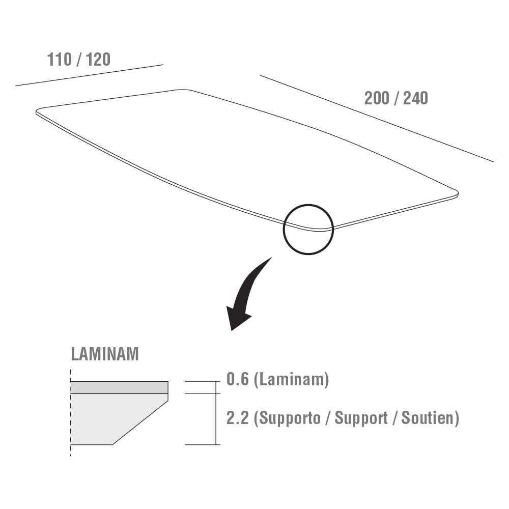 Tillgängliga toppfinishar: Tillgängliga storlekar:- B 200 x D 100 x H 76 cm;