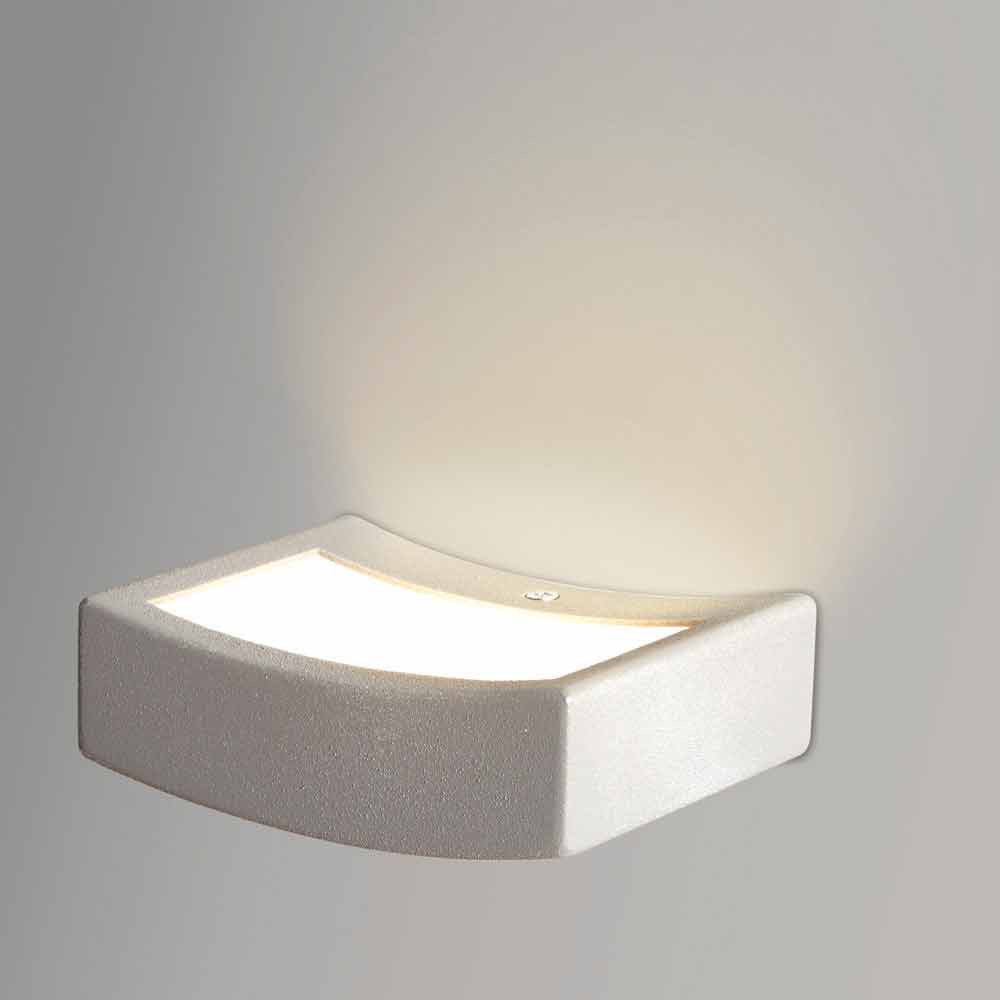 Vägglampa tillgängliga i olika storlekar, tillverkad av bockad stålplåt och målade med epoxi pulver med dekoration för hand. Den integrerade LED-modulen till nätspänningen tillåter en homogen indirekt belysning genom diffusorn i opalin metakrylat.