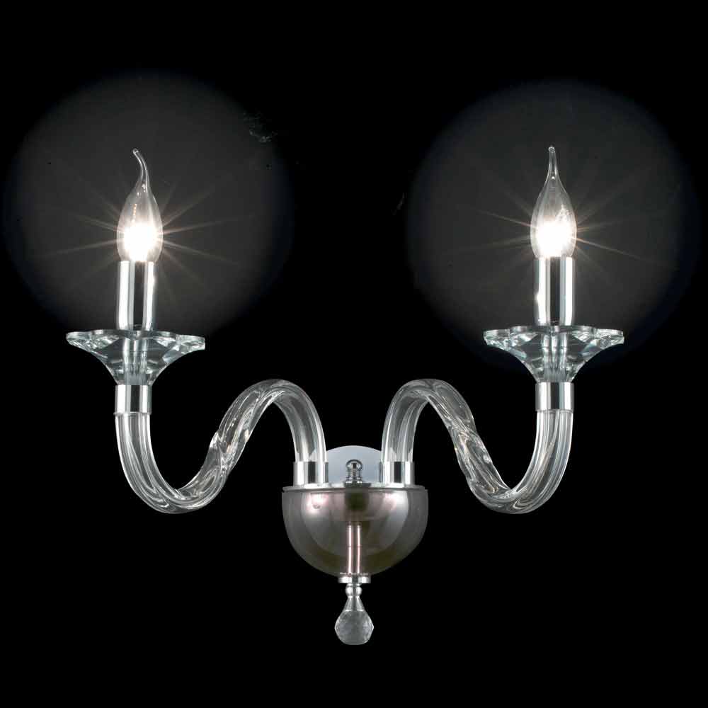 Vägglampa i två glaslampor och Crist Ivy, tillverkad i Italien Vägglampa i transparent glas, handgjorda med kristall dekorationer. Krom beslag. Lökar: 2 x 40W E14 Lampor ingår ej.