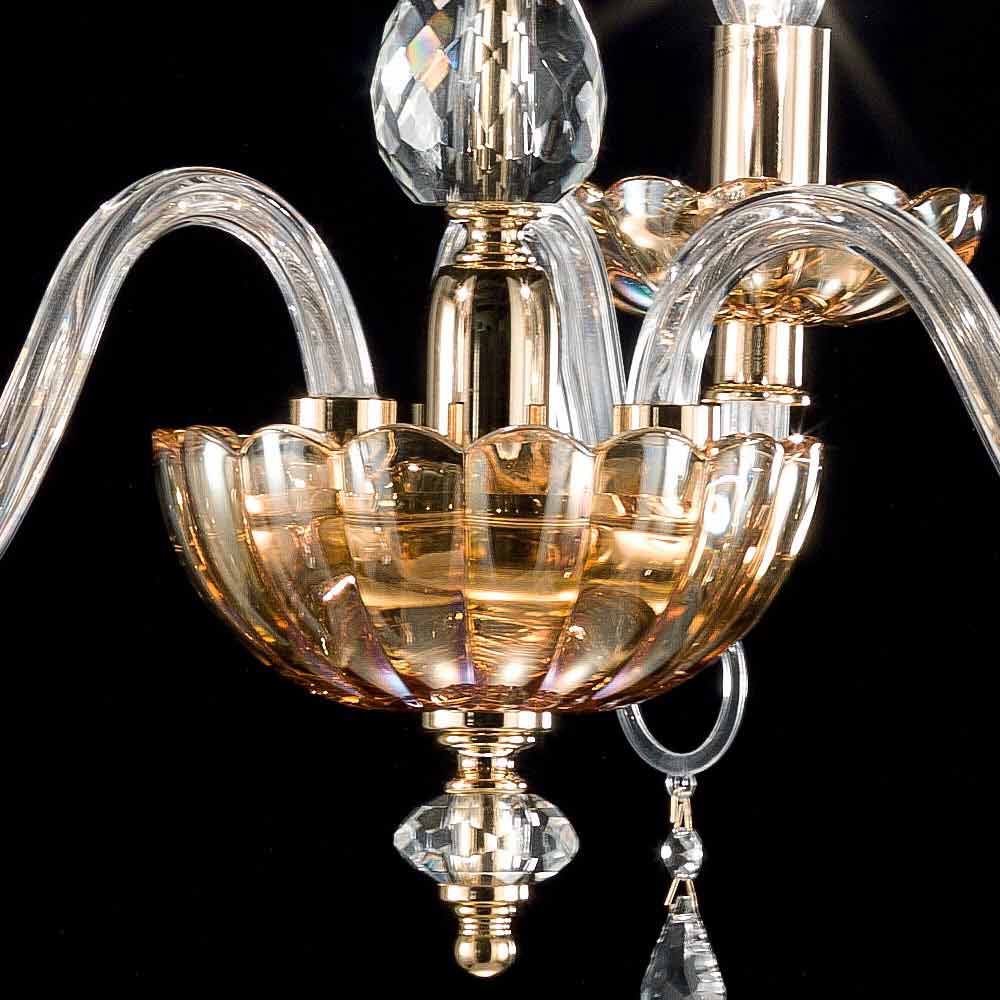 Klassisk ljuskrona i kristall och glas med 3 Belle-ljus, tillverkad i Italien Hänglampa i bärnstensfärgat glas och kristall med guldfinish. Glödlampor: 3 X E14 40W Glödlampor ingår ej.