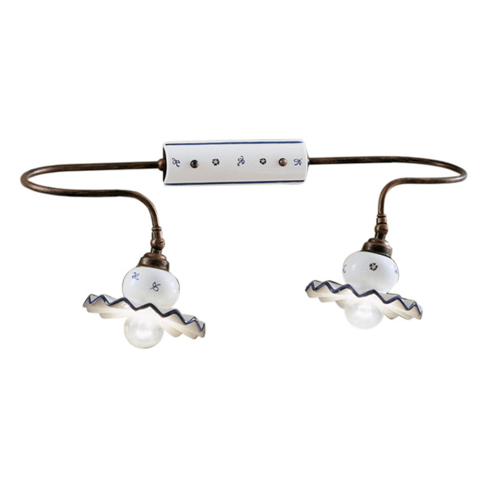 Handgjord handmålad vägglampa i metall och keramik tillverkad i Italien av Ferroluce.