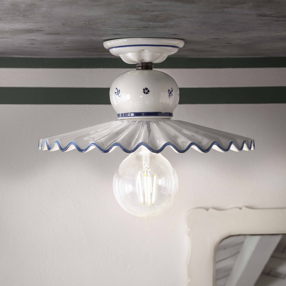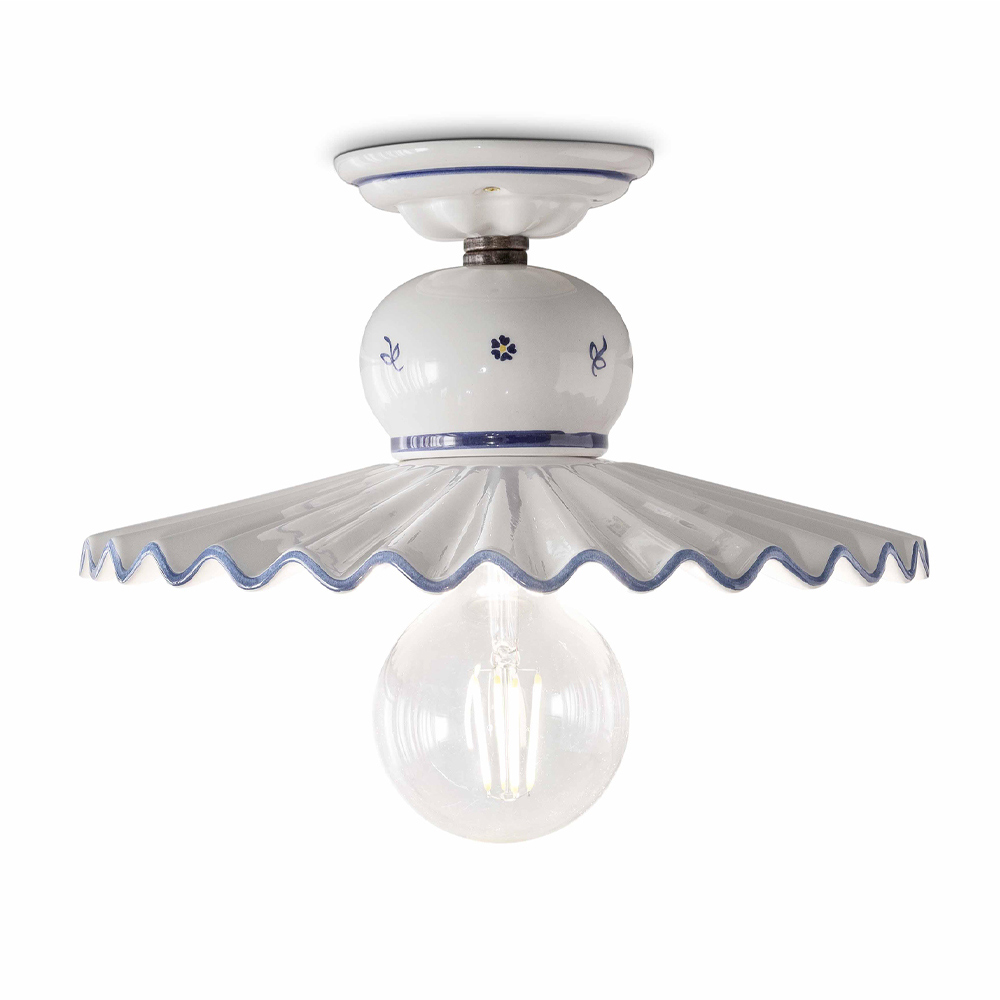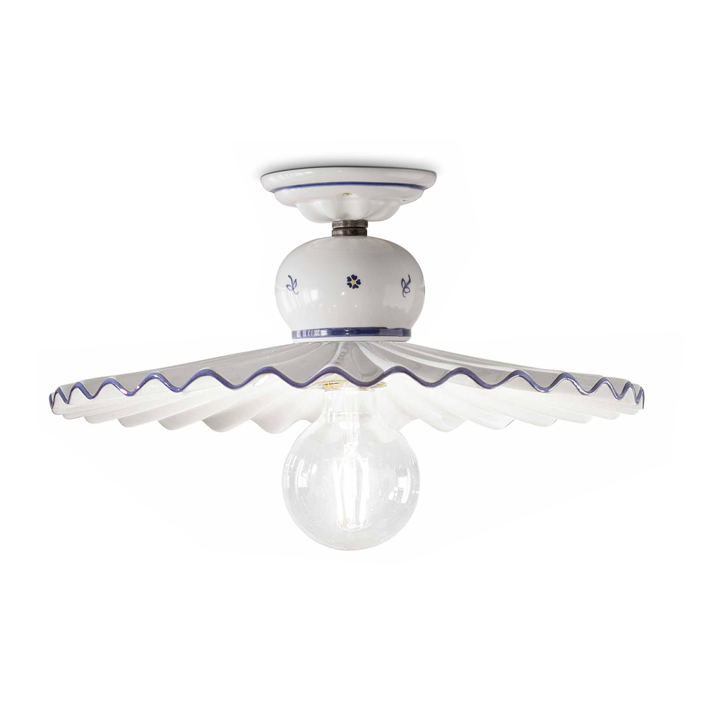 Handgjord taklampa i metall och handmålad keramik, 2 storlekar tillverkad i Italien av Ferroluce.