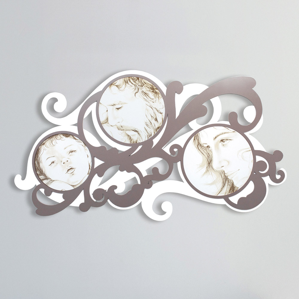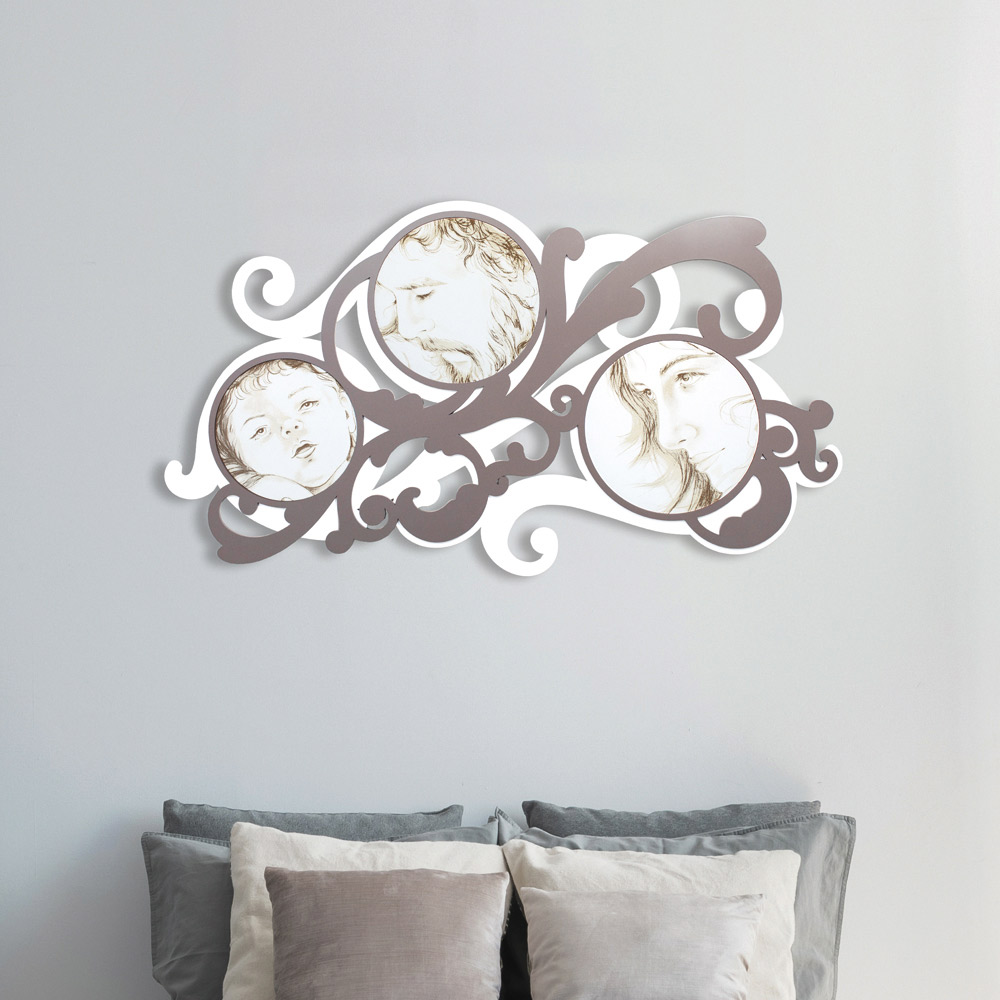En sänggavel som visar härstamningen tack vare lasermarkering, som visar ansiktens egenskaper. Matt vitlackerad träpanel med lasermärkning, en speciell teknik som skapar en basrelief på materialen. Den ursprungliga handritade designen i kombination med laserteknik ger liv åt detta verk graverat på flera nivåer.