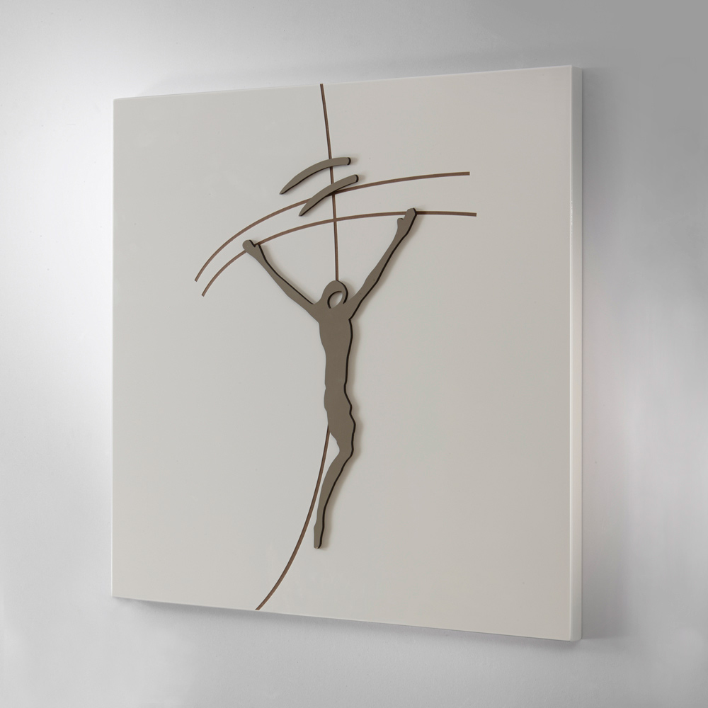 Enkla och väsentliga linjer kännetecknar skildringen av Jesu Kristi korsfästelse med en ny och originell tolkning av korset som gör denna produkt unik i sitt slag. De skickliga händerna på italienska hantverksmästare har skapat denna målning med uppmärksamhet på varje enskild detalj.