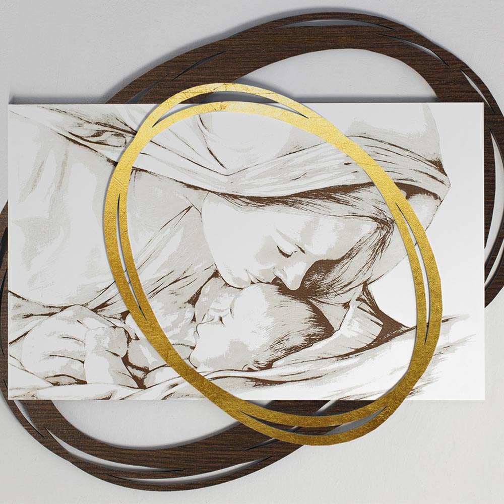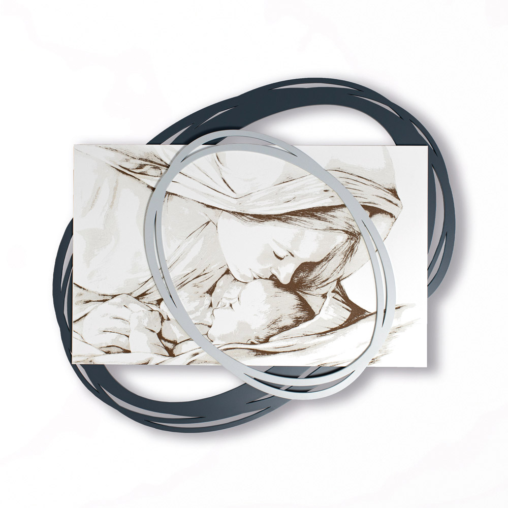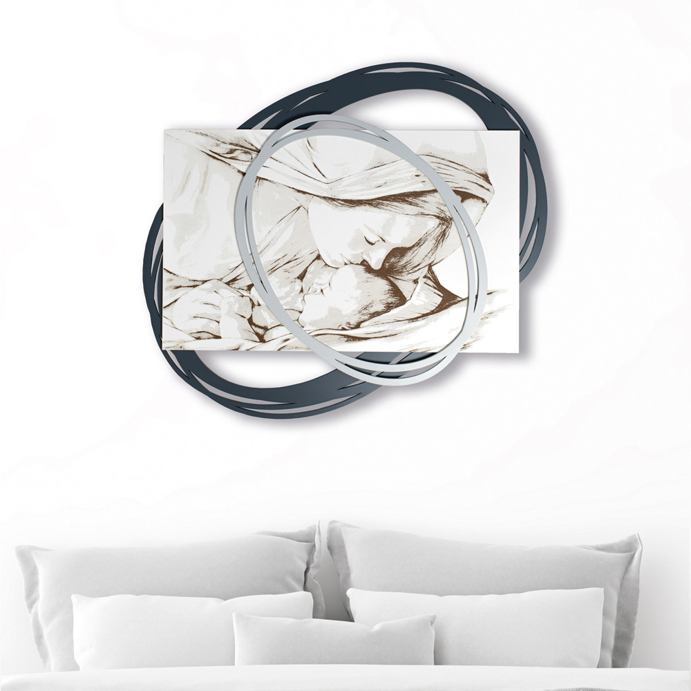 Denna målning designades för att maximera ömheten i den kyss som Madonnan ger Jesus. Enkla men precisa linjer är födda från händerna på italienska mästare som har skapat denna design med omsorg och engagemang, vilket gör den unik och oefterhärmlig. Denna sänggavel kombinerar kvaliteten på material och tekniker med möjligheten att välja de ytbehandlingar som bäst passar varje designbehov.