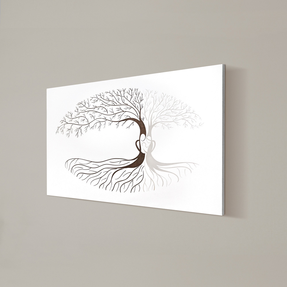 Dekorationspanel som representerar föreningen av två stammar i en familjefamning, en symbol för livet.