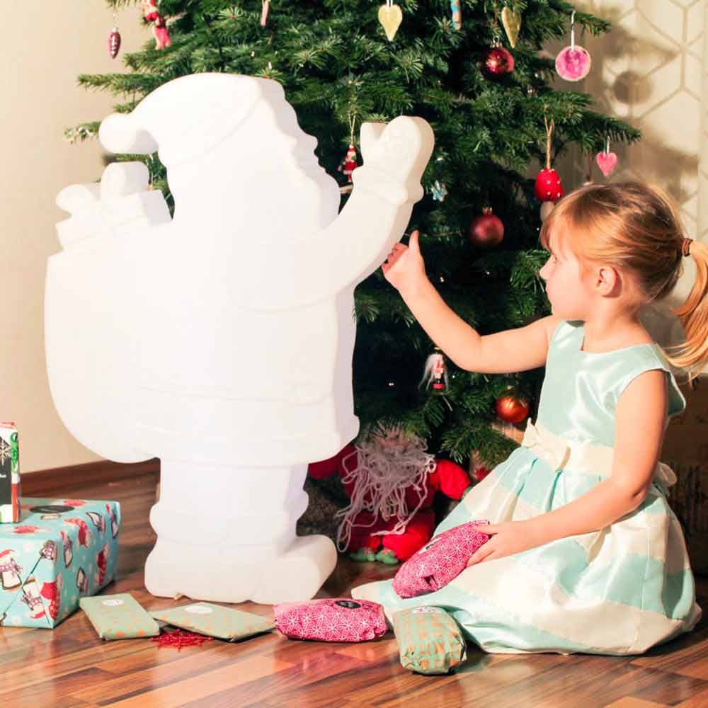 Golvlampa i form av jultomten i vit polyeten med mångfärgade lysdioder för inomhus- eller utomhusbruk.