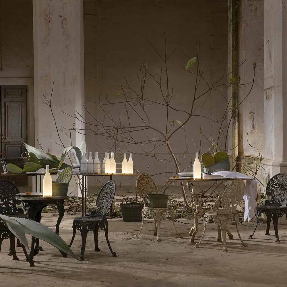 Denna originella och unika bordslampa har en raffinerad design i form av en flaska med rena och enkla linjer.