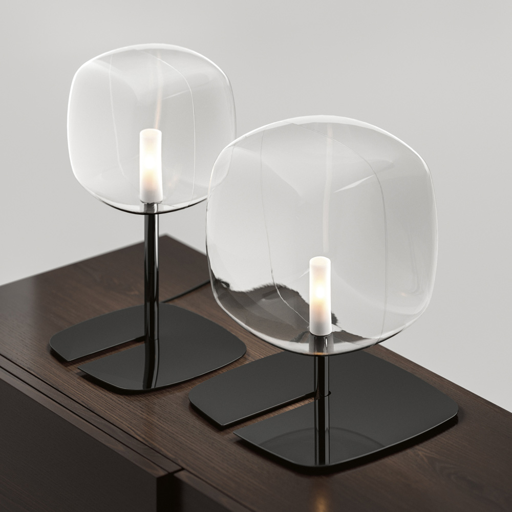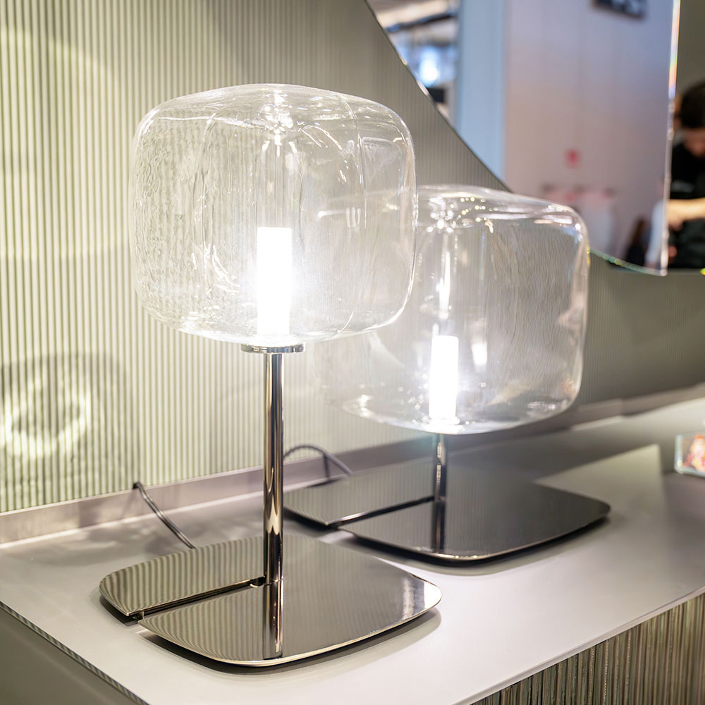 LED bordslampa i transparent glas och metall Tillverkad i Italien.