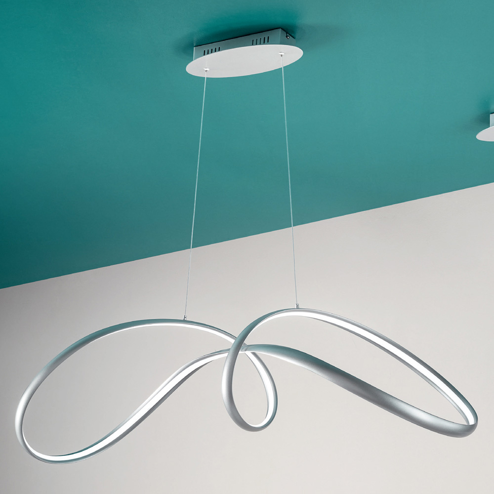 LED pendellampa i silvermetall och polymer, modern design i två dimensioner.
