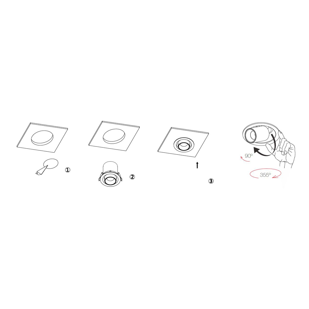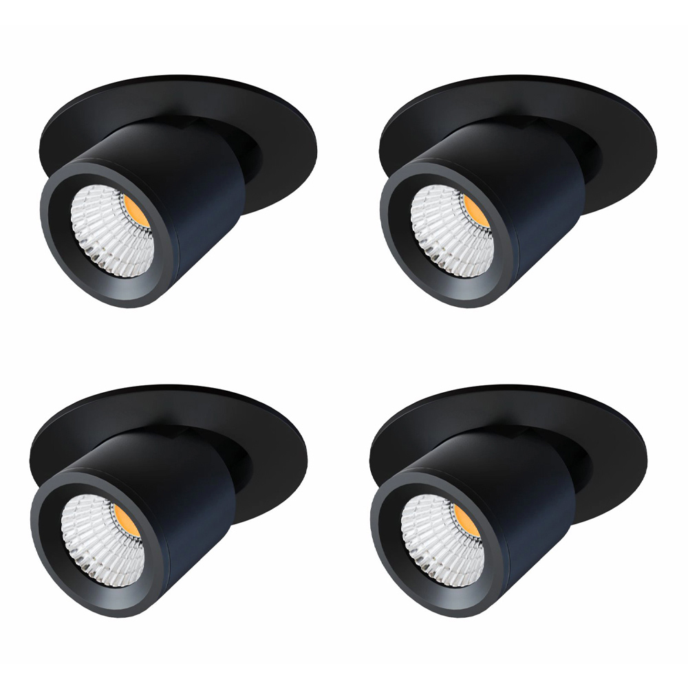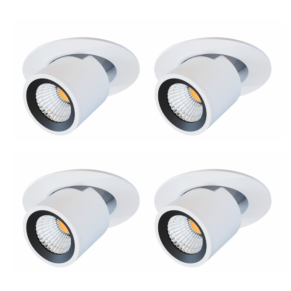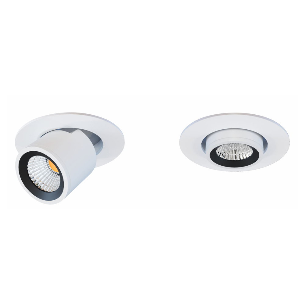 Infälld led-spotlight inomhus i vit eller svart aluminium.