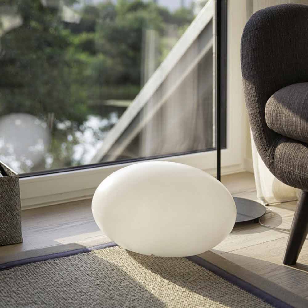 Golvlampa med attack efter eget val, finns i olika färger med en oval och modern design för inomhus eller utomhus.