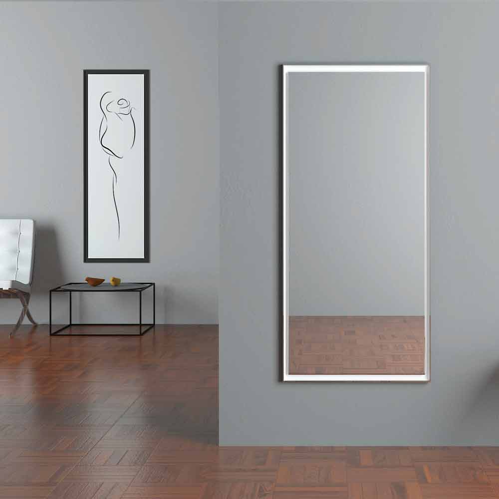 Modern rektangulär väggspegel med perimeterbelysning Made in Italy.