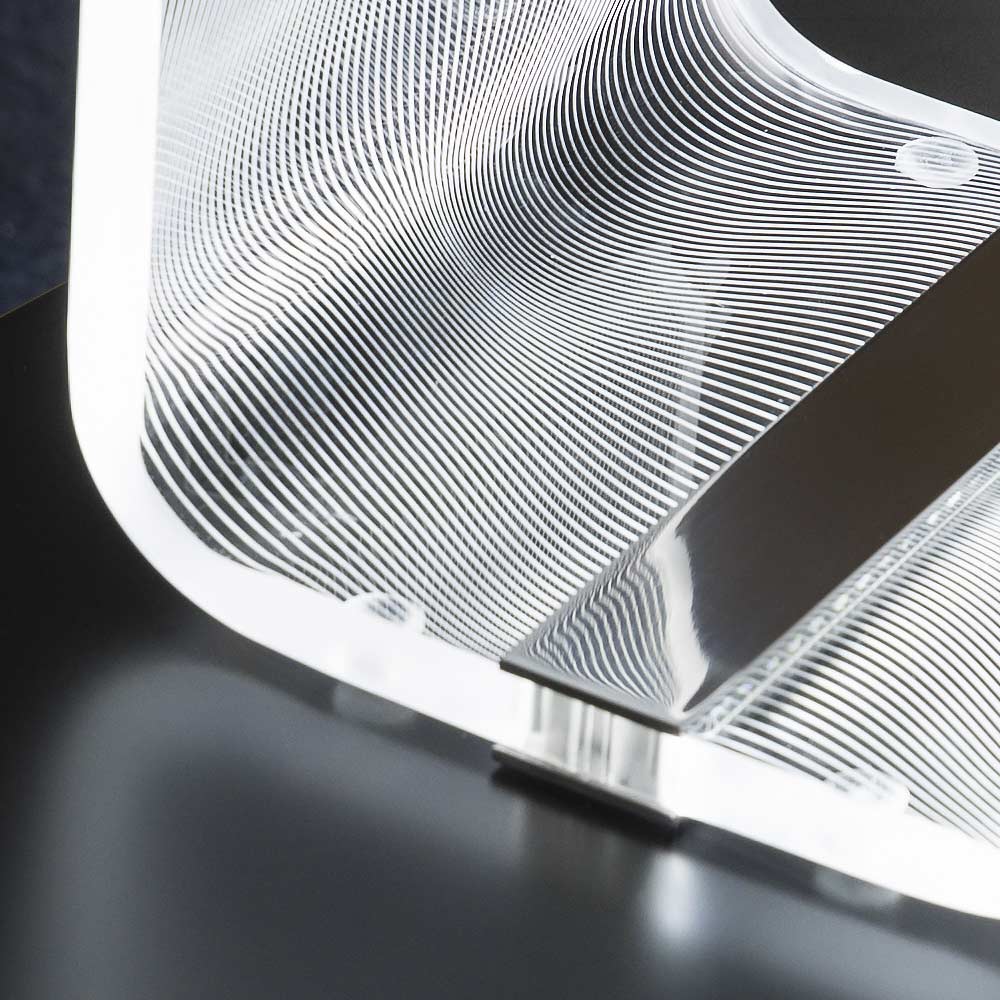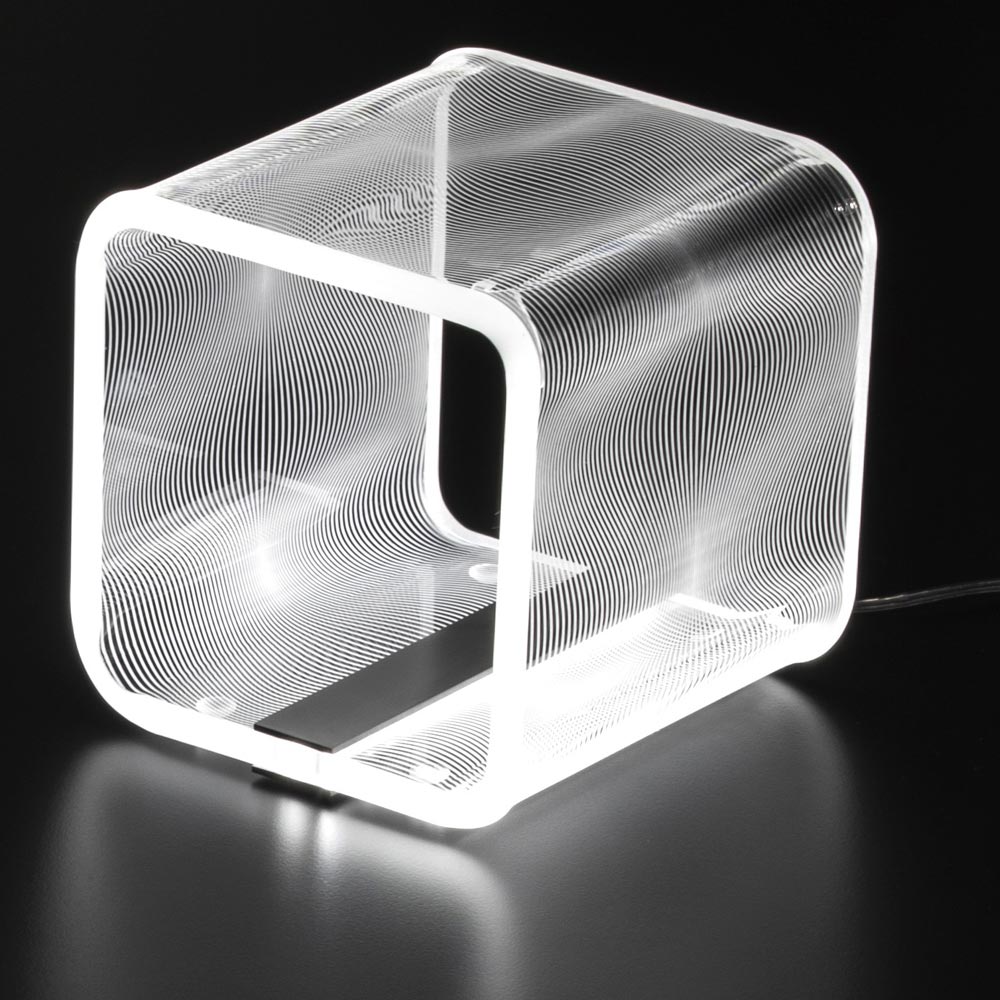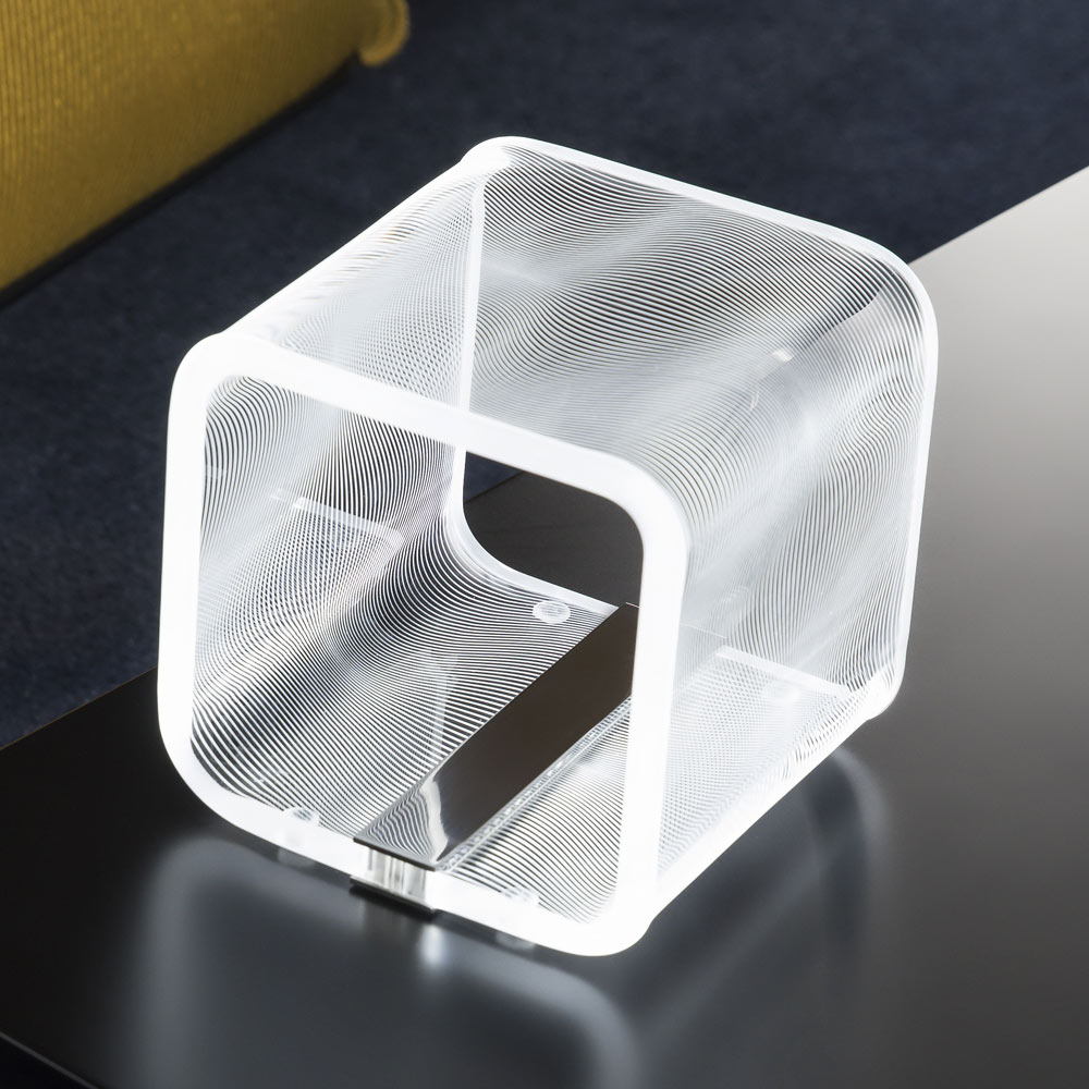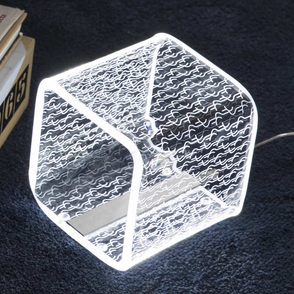 Fyrkantig led strip bordslampa i transparent akryl 2 storlekar, tillverkad i Italien.