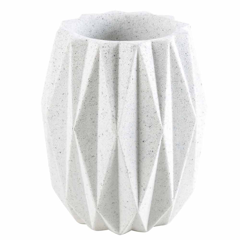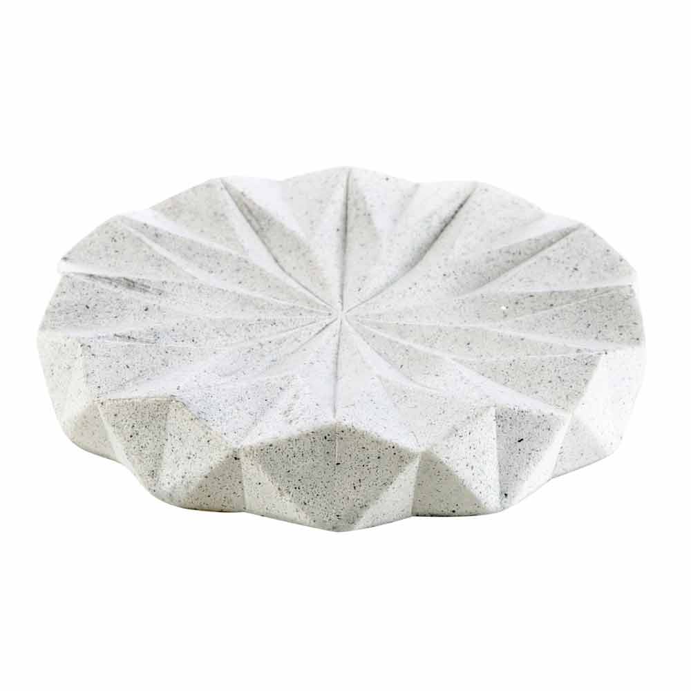Tillverkad av vitpigmenterad harts med sammanvävning av exklusiva geometriska former.
