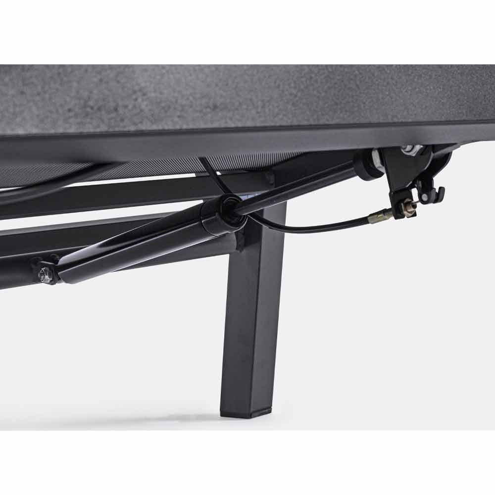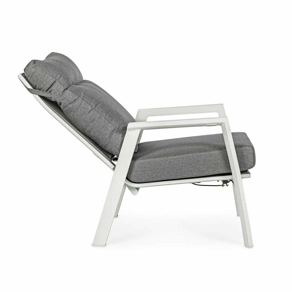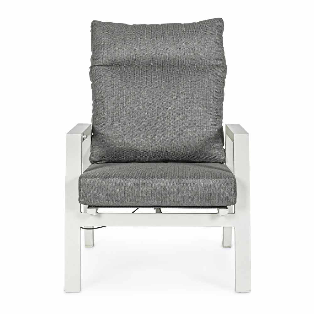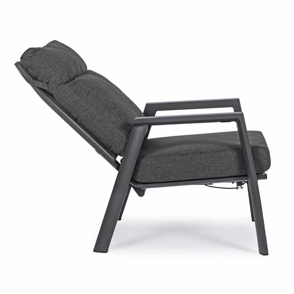 Pulverlackerad aluminiumstruktur (polyester). Lutande ryggstöd i fritt läge och säte i 1x1 textilene. Avtagbara kuddar med olefintyg (100% polypropen).