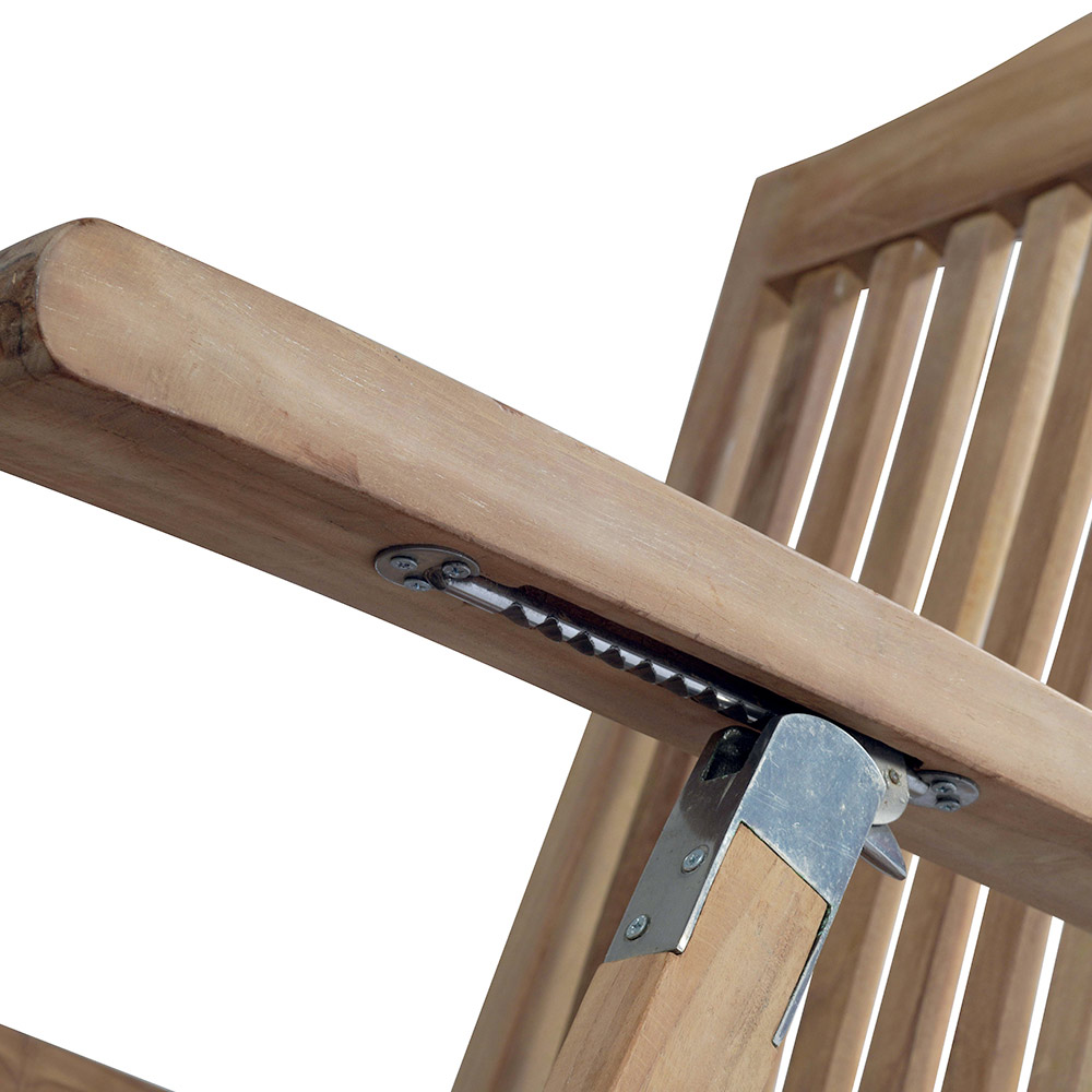 Fåtöljen är justerbar , vilket gör att du kan hitta den perfekta positionen för maximal komfort, oavsett om du vill läsa, sola eller ta en tupplur. De ergonomiska lamellerna ger optimalt stöd, medan den solida teakstrukturen säkerställer stabilitet och hållbarhet.