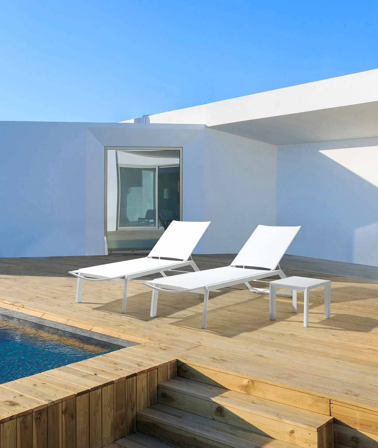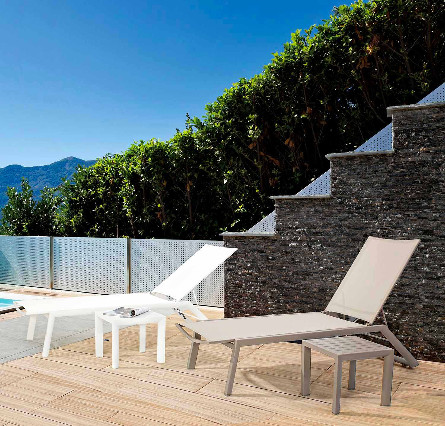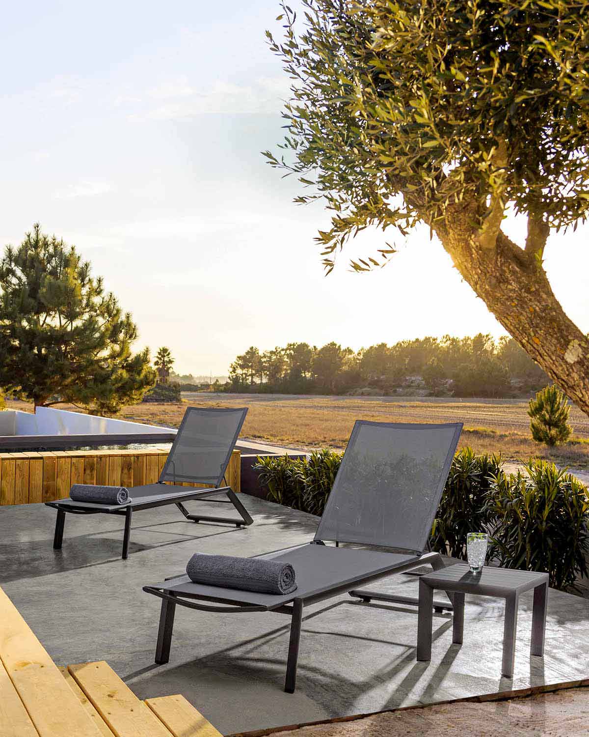 Liggande utomhus chaiselong med hjul, aluminium och textil - juvel